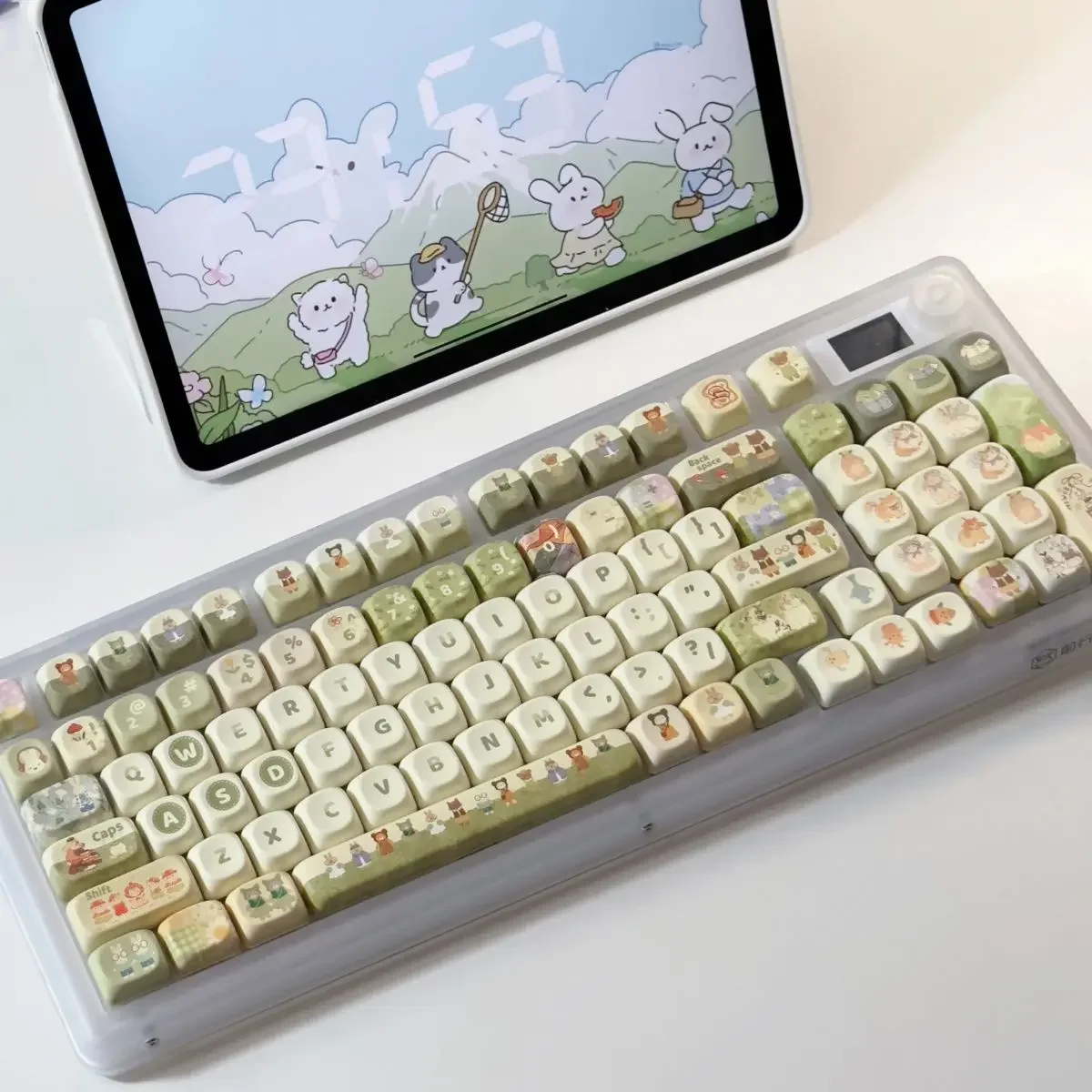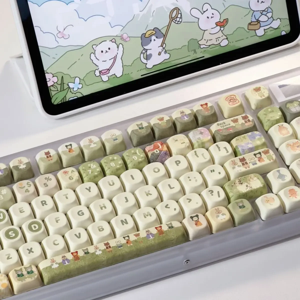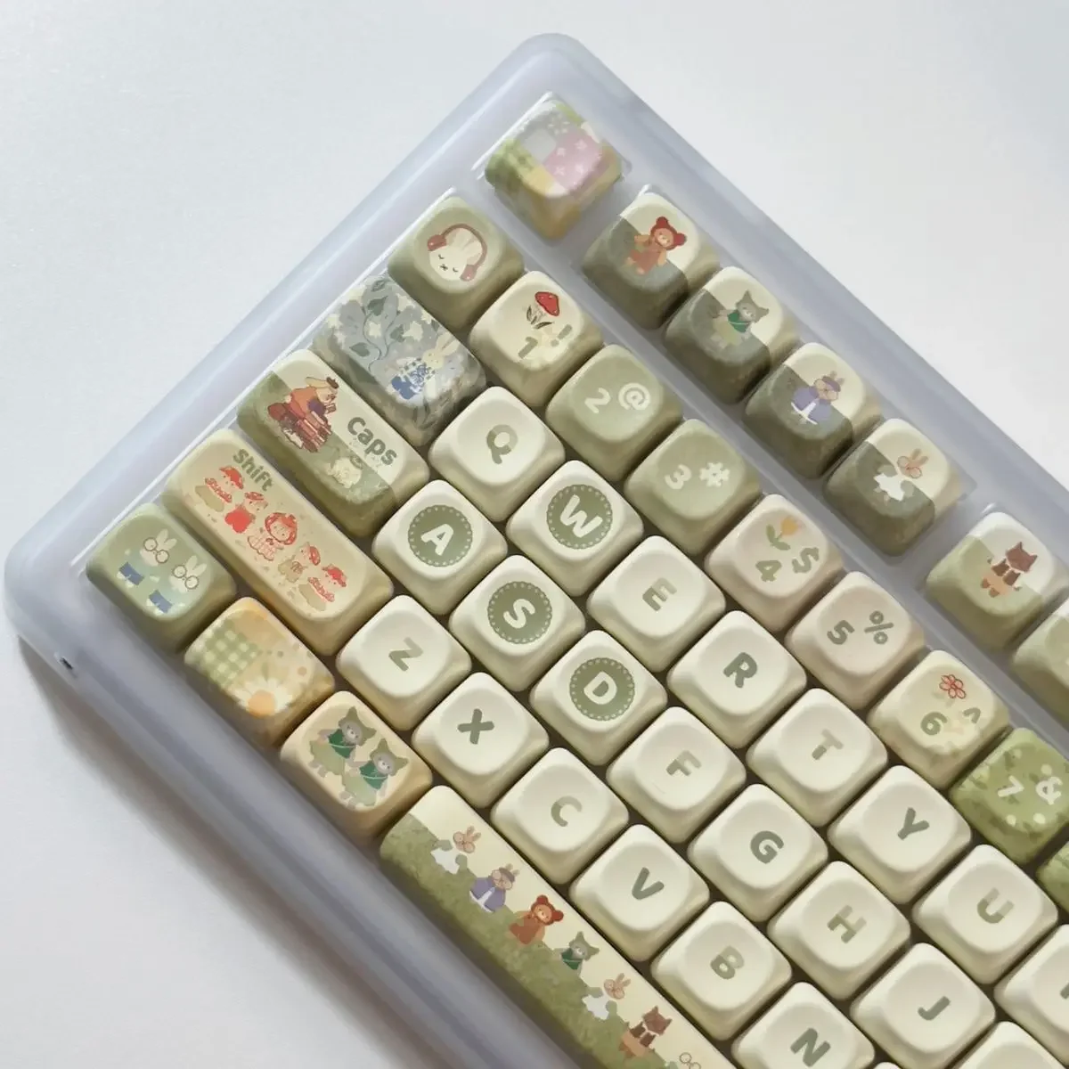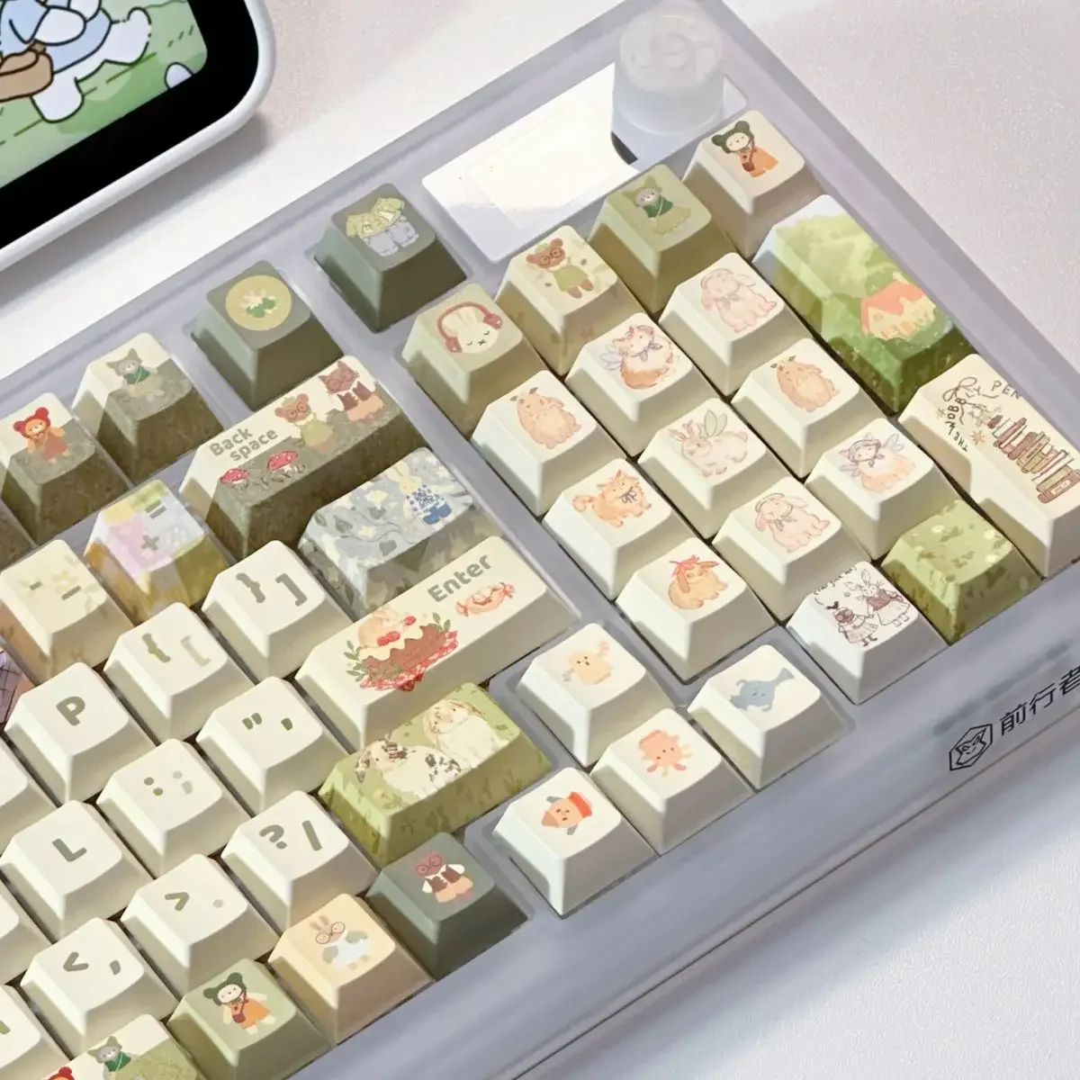 Comprar Juego completo de teclas de conejo de Animal pequeño verde, 140Key, Cherry Xoa Pbt, sublimación, llave mecánica, dibujos animados, lindo, leche verde