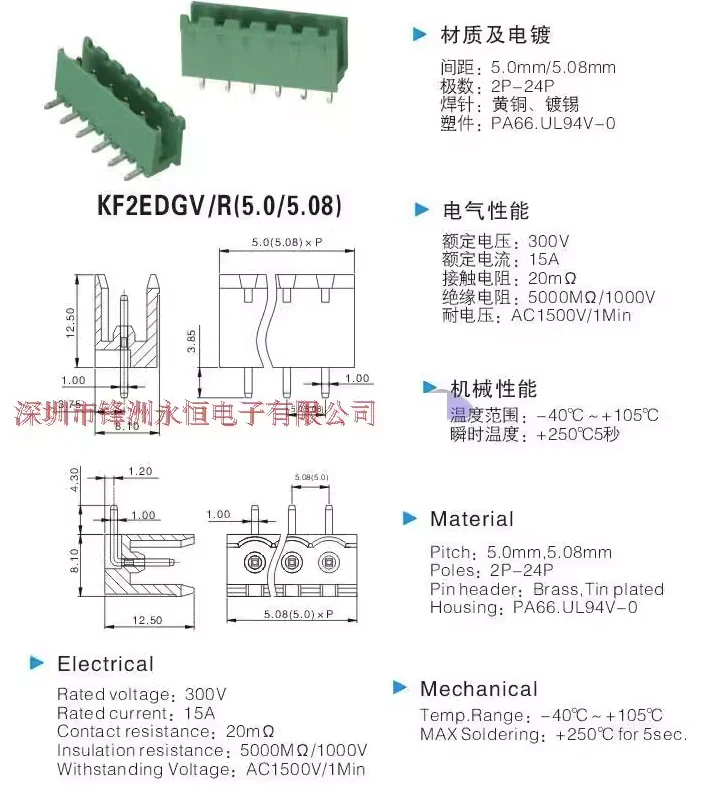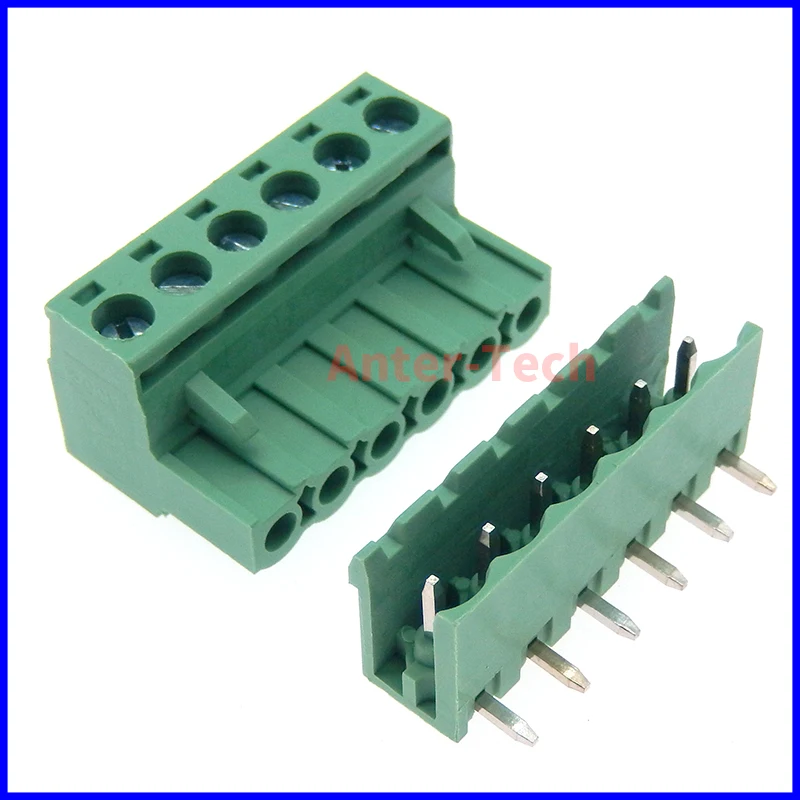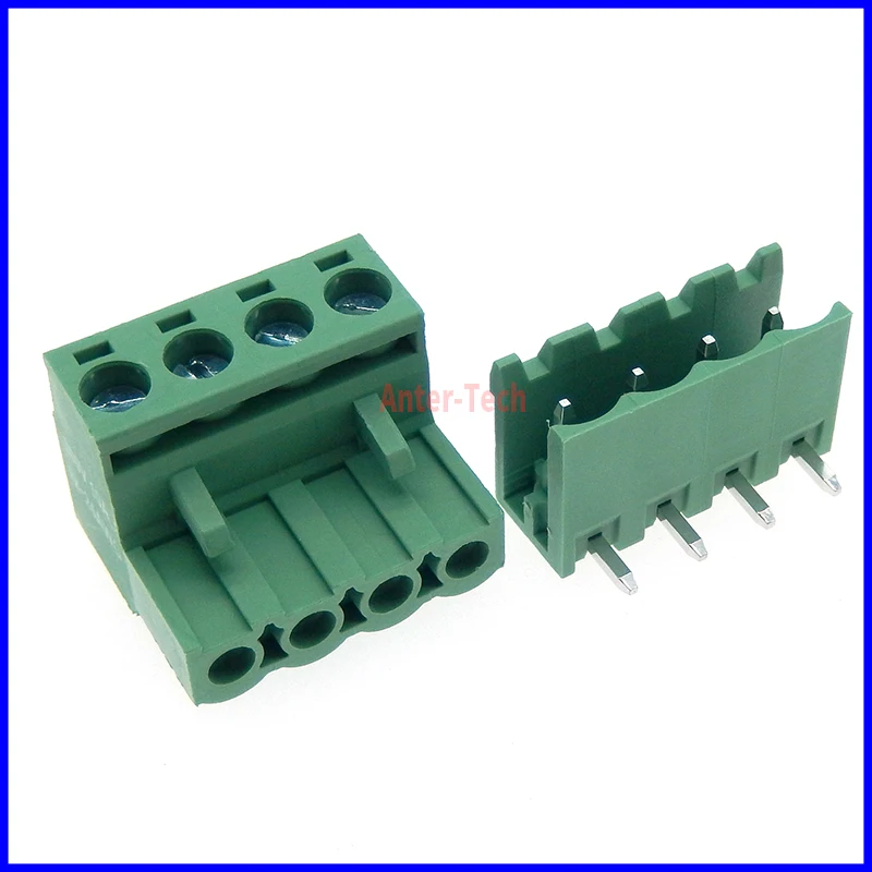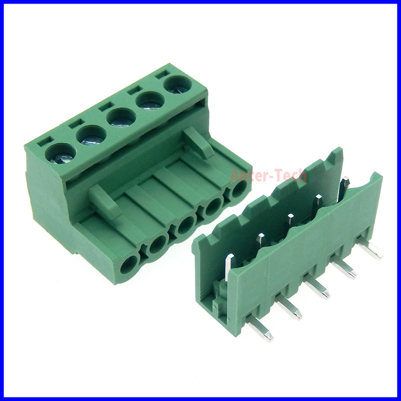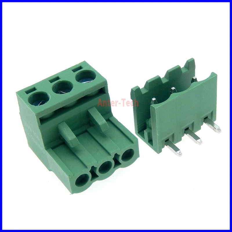 5 Juegos 2EDG 3 pines 5,08 MM paso ángulo recto bloque de terminales de tornillo enchufable 5,08 3 pines enchufe tipo conector PCB enchufe + enchufe 300V