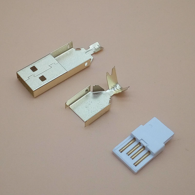 50set USB chapado en oro 3 en 1 DIY enchufe macho tipo A DIY Cable de soldadura DIY 2,0 conector USB