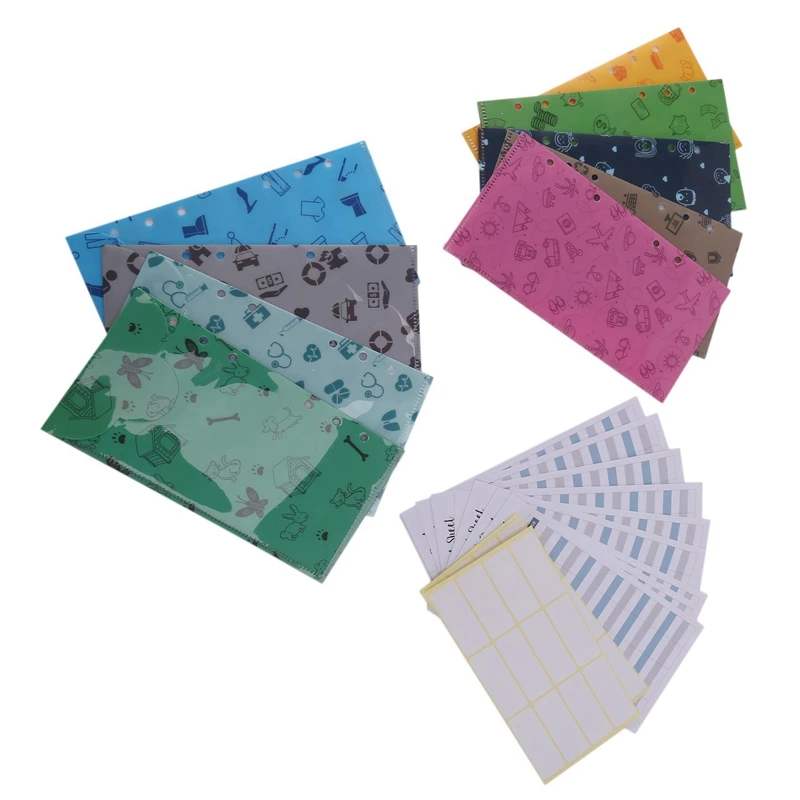 58 piezas de cubierta de carpeta de brillo A6 juegos de cubierta de carpeta de PVC 4 hojas etiqueta adhesiva para el planificador de facturas de la escuela en casa