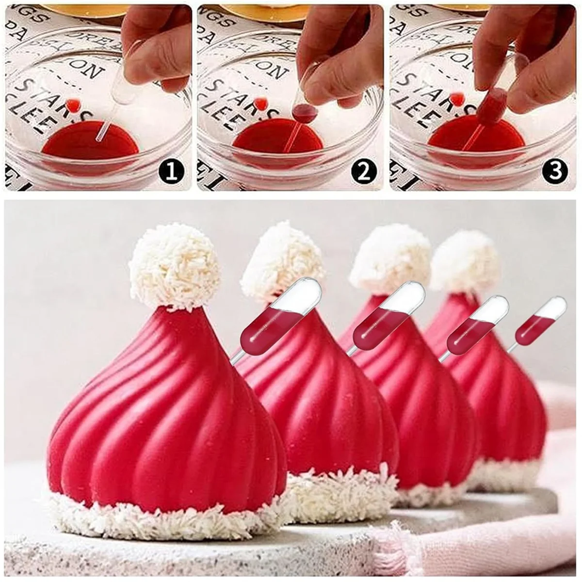 Comprar Juego de decoración de cuentagotas de mermelada y magdalenas de papel de 100 piezas, cuentagotas de plástico, pipeta de postre (redonda)