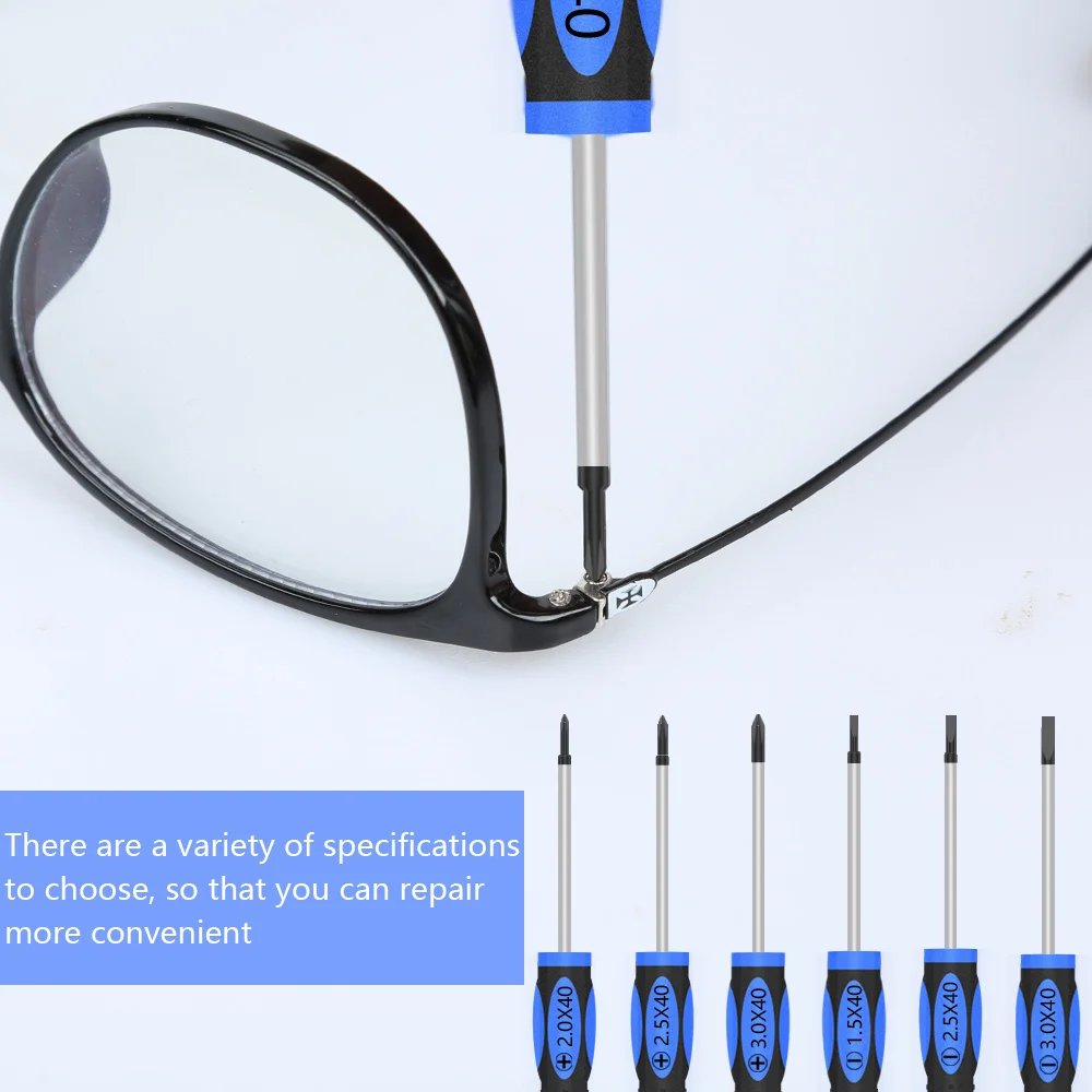 4.Juego de destornilladores de precisión con diferentes tamaños de destornilladores Phillips y de punta plana, 6 piezas.