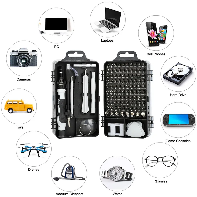 Juego de destornilladores de precisión 115 en 1, herramientas manuales de reparación electrónica, microbrocas magnéticas para iPhone PC Mac, consola de juegos DIY
