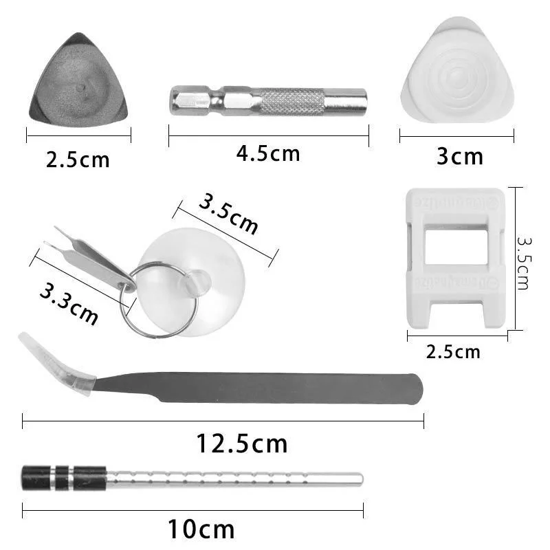 Detalles del kit de herramientas 115 en 1: 98 destornilladores + 17 accesorios de desmontaje