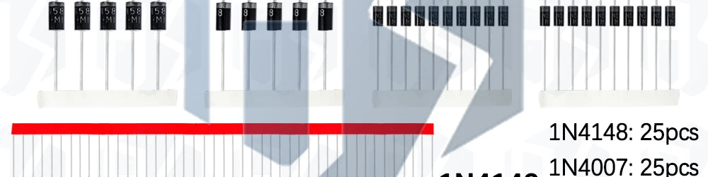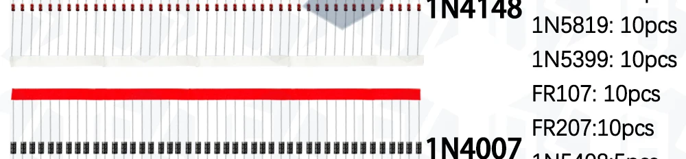 Juego de diodos Schottky de conmutación rápida BS, 8 valores diferentes, 1N4148 1N4007 1N5819 1N5399 1N5408 1N5822 FR107 FR207, 8 valores = 100 Uds.