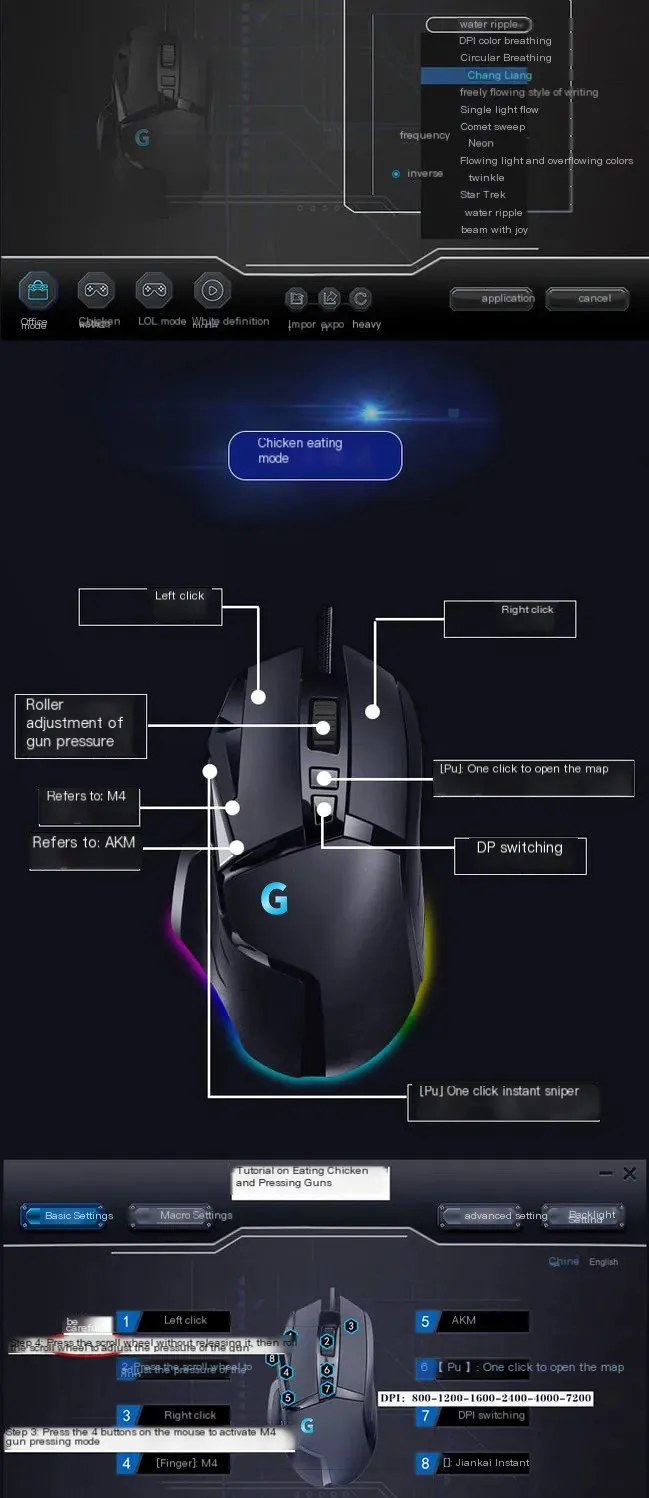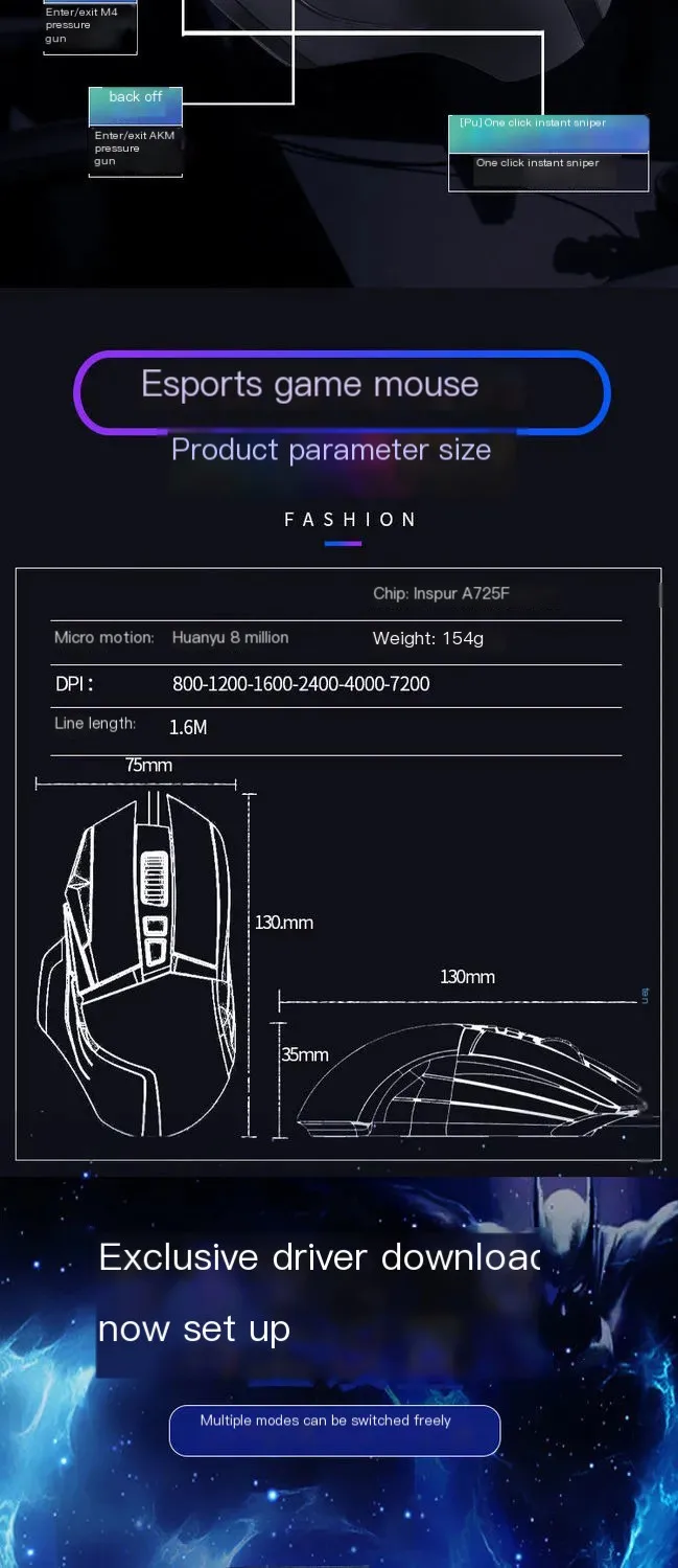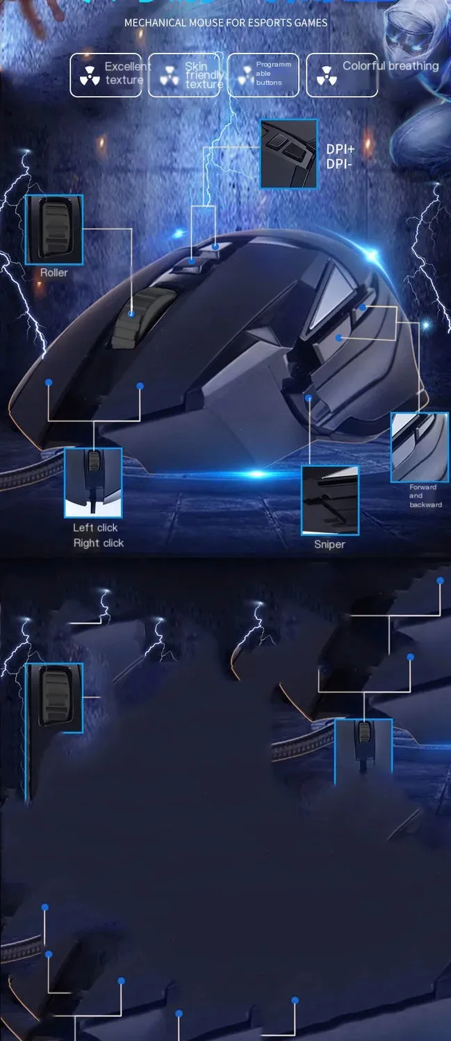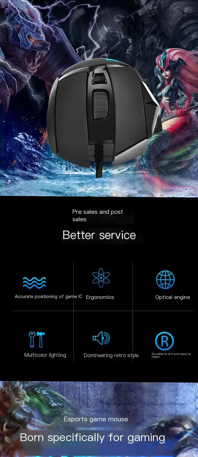 Comprar Juego de e-sports negro con efectos de iluminación RGB, interfaz USB, programación Macro, ratón con cable, ajuste de DPI de seis niveles, diseño ergonómico