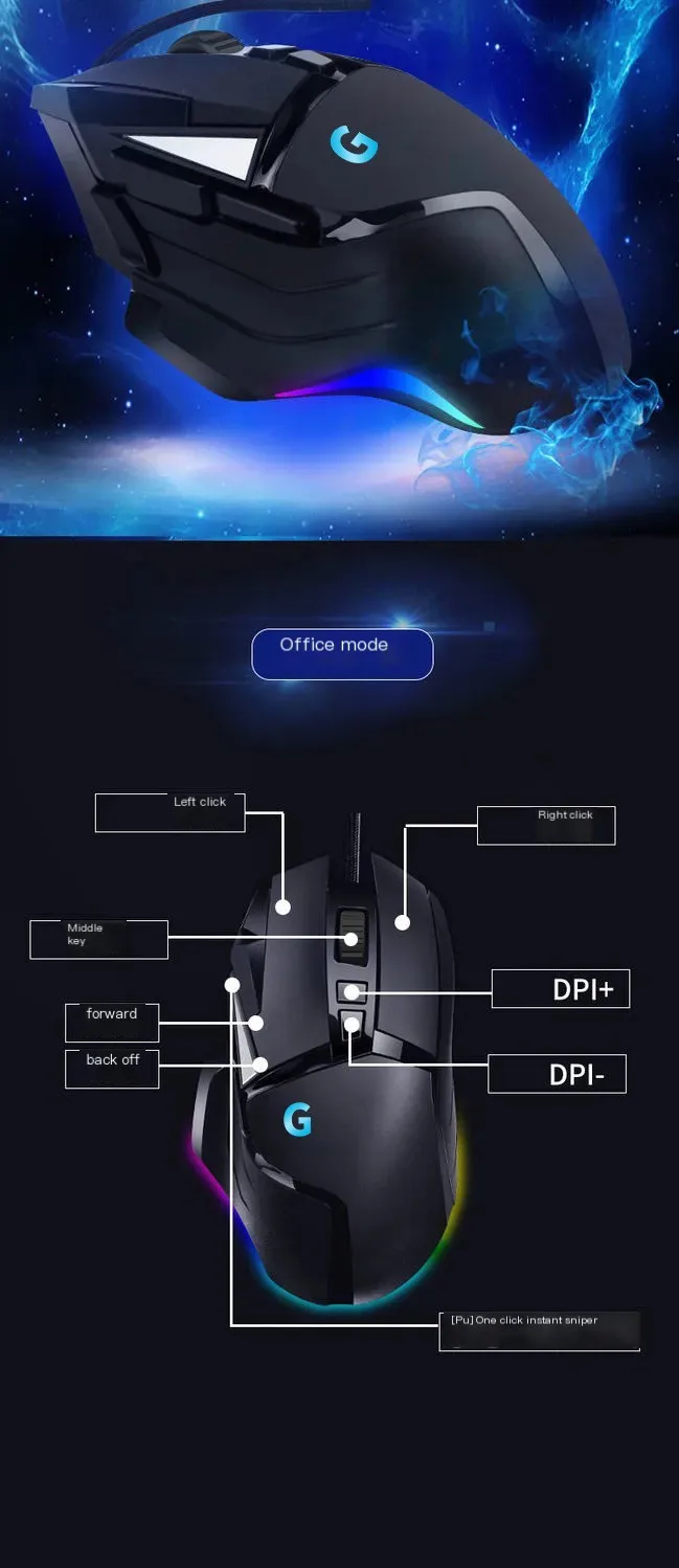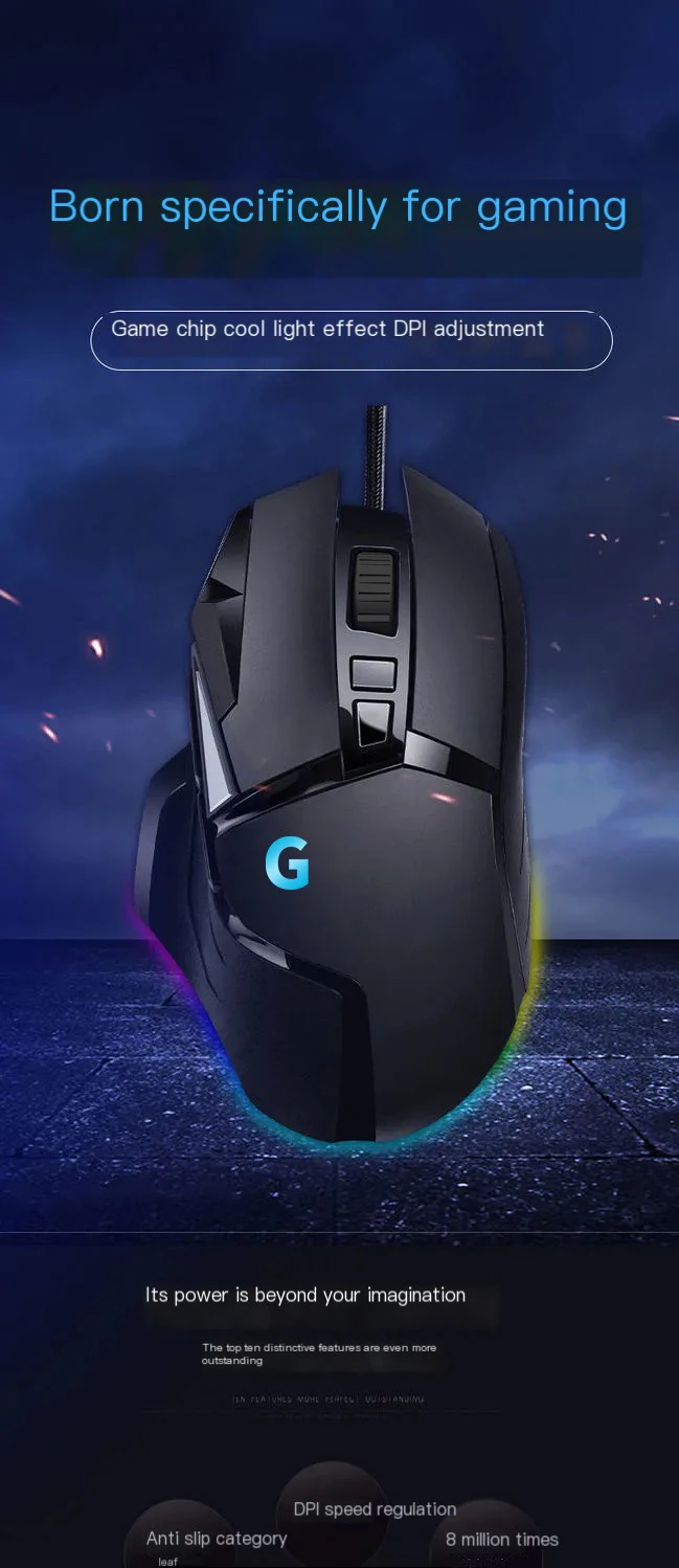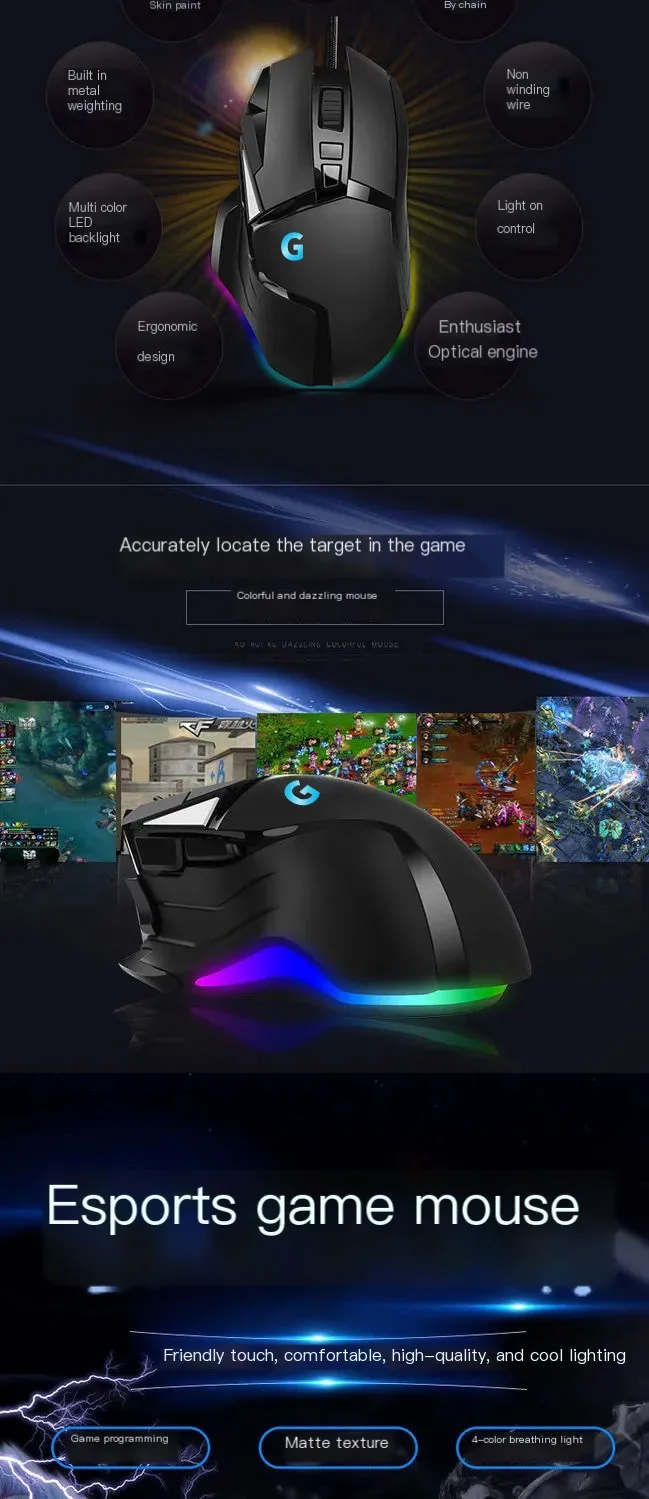 Comprar Juego de e-sports negro con efectos de iluminación RGB, interfaz USB, programación Macro, ratón con cable, ajuste de DPI de seis niveles, diseño ergonómico