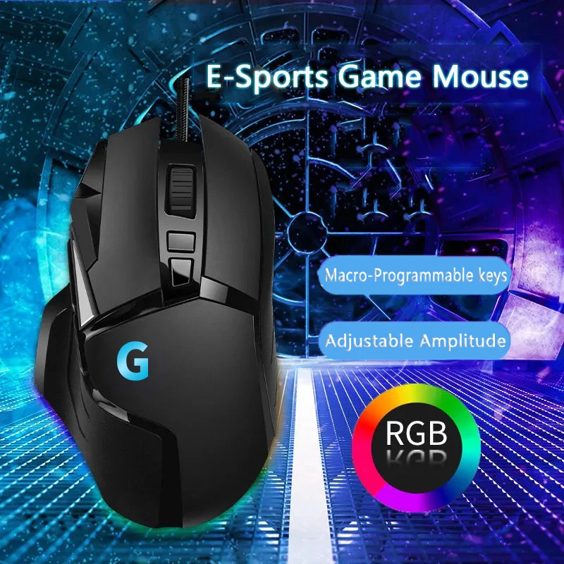 Comprar Juego de e-sports negro con efectos de iluminación RGB, interfaz USB, programación Macro, ratón con cable, ajuste de DPI de seis niveles, diseño ergonómico