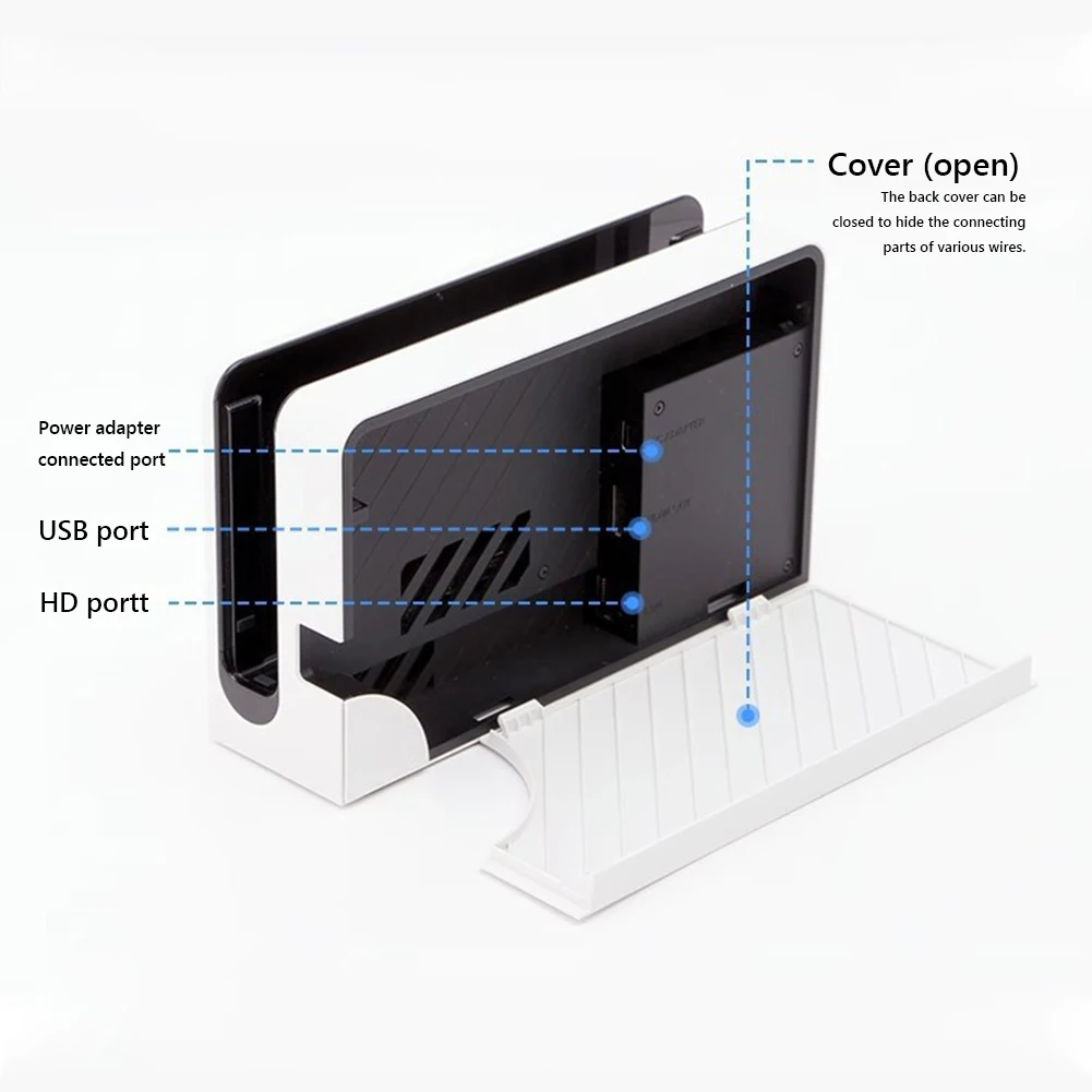 5.Diseño compacto:Esta estación de acoplamiento para base de TV presenta un diseño elegante que ahorra espacio y se integra perfectamente con su centro de entretenimiento, brindando una solución ordenada y eficiente para su configuración de juego.