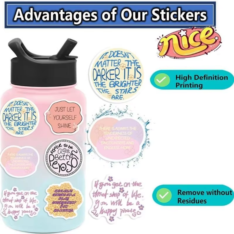 Características:OOTDTYMejora tu creatividad con 50 pegatinas decorativas de PVC impermeables que presentan diseños caprichosos de dibujos animados y citas edificantes, diseñadas para brindar una vitalidad duradera en fundas de teléfonos, computadoras portátiles y más.