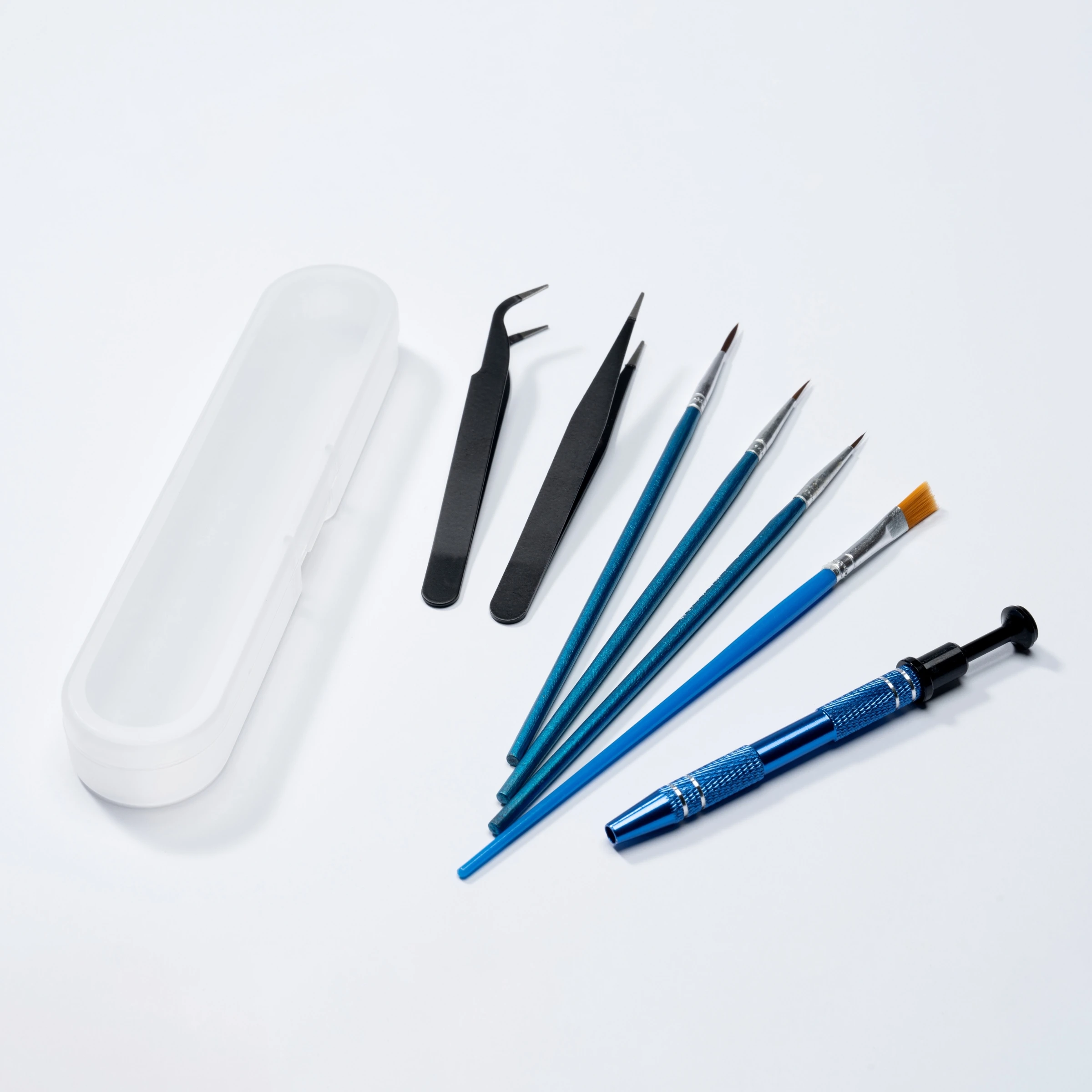 Conjunto de muy mala calidad. El soporte de vapor viene con una resistencia. Pinceles con pelo pintado. Las pinzas más baratas. Te aconsejo que busques algo más.