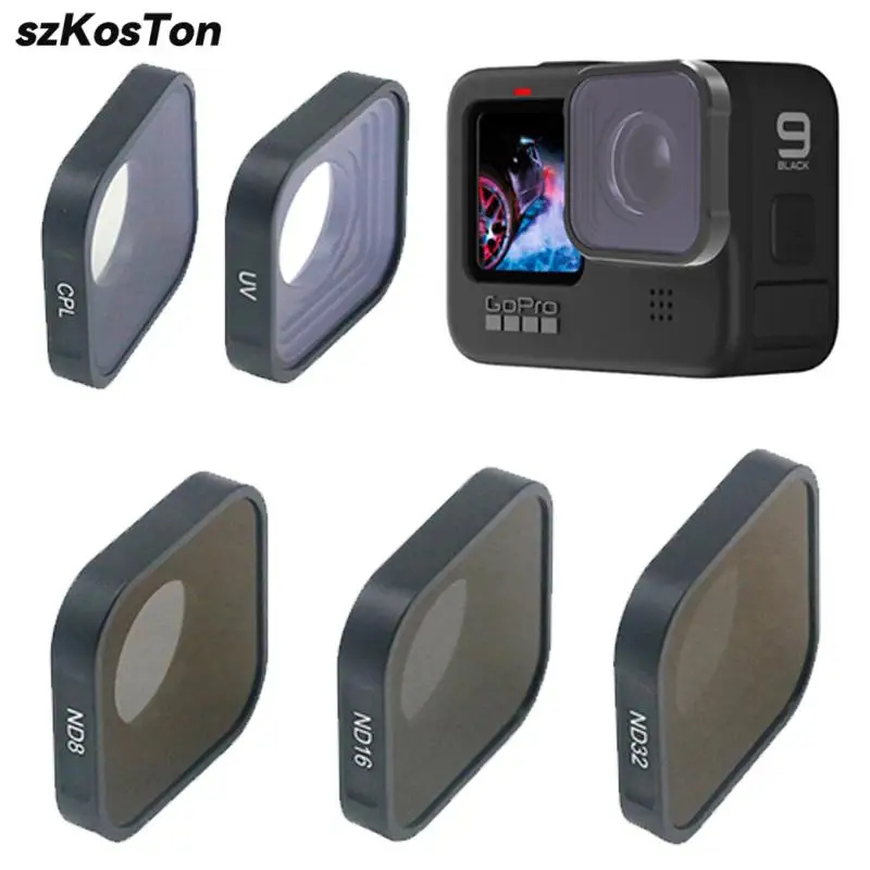 Comprar Juego de filtros de lente ND8 ND16 ND32 UV CPL, marco de aleación de aluminio para GoPro Hero 12 11 9, accesorios de lente de cámara de acción negra ND CPL