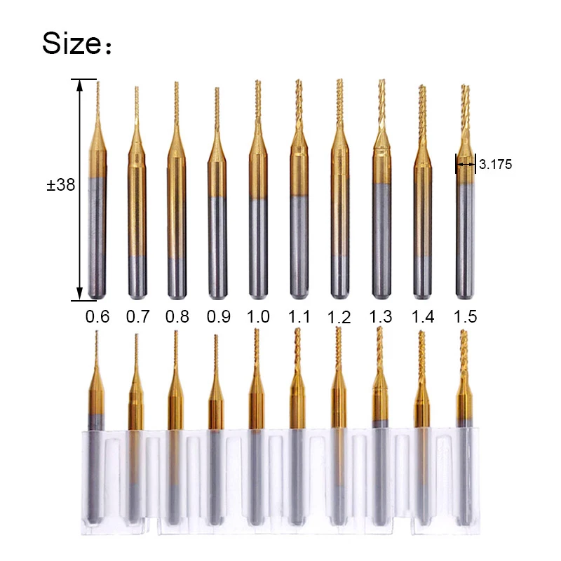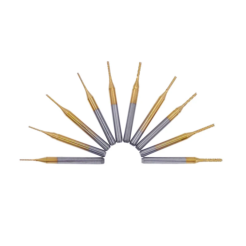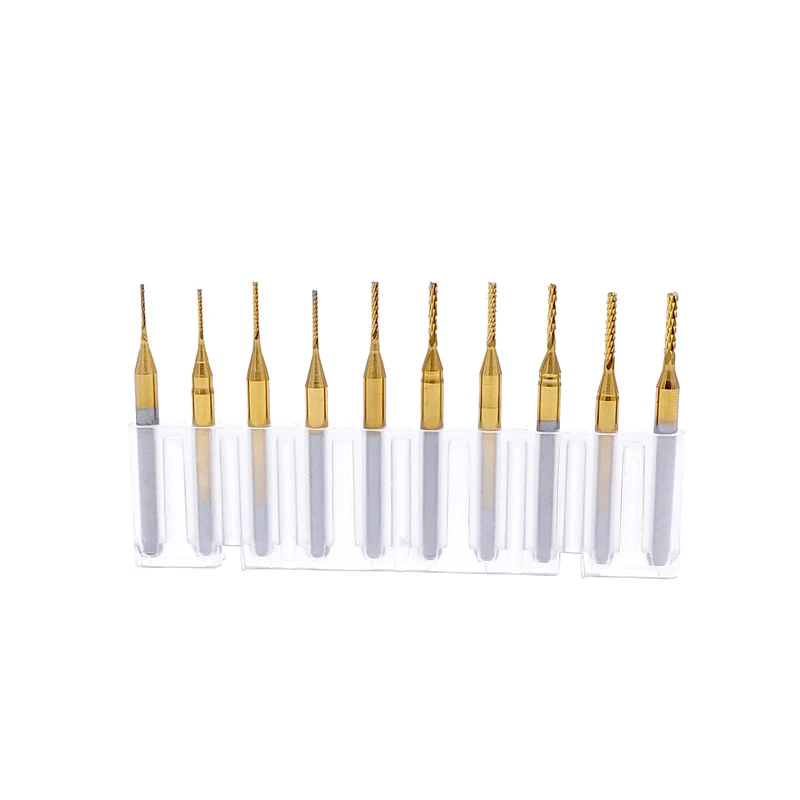 Comprar Juego de fresas de carburo PCB para Metal, cortador de maíz de 0,6-1,5mm, máquina de vástago, broca de grabado, 10 piezas