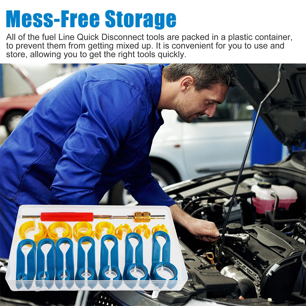Universal: la herramienta de desconexión es adecuada para la mayoría de las líneas de combustible, tubos de A/C, tubos de calentador, etc., lo cual es práctico.