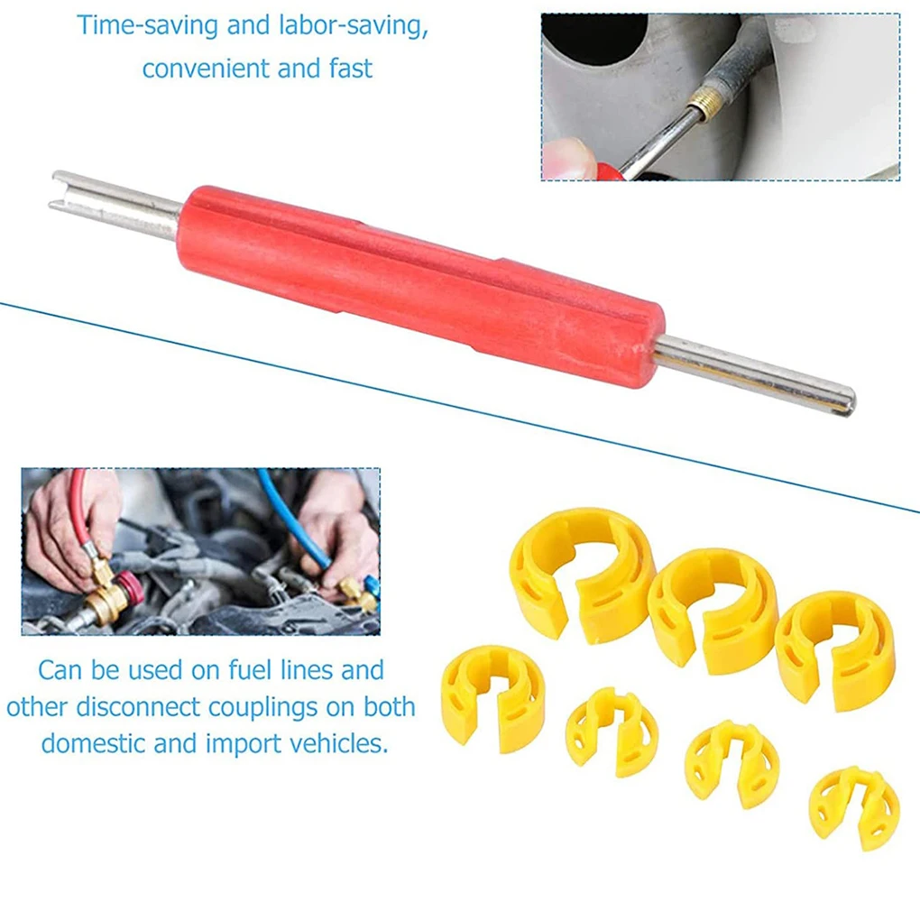 Universal: la herramienta de desconexión es adecuada para la mayoría de las líneas de combustible, tubos de A/C, tubos de calentador, etc., lo cual es práctico.