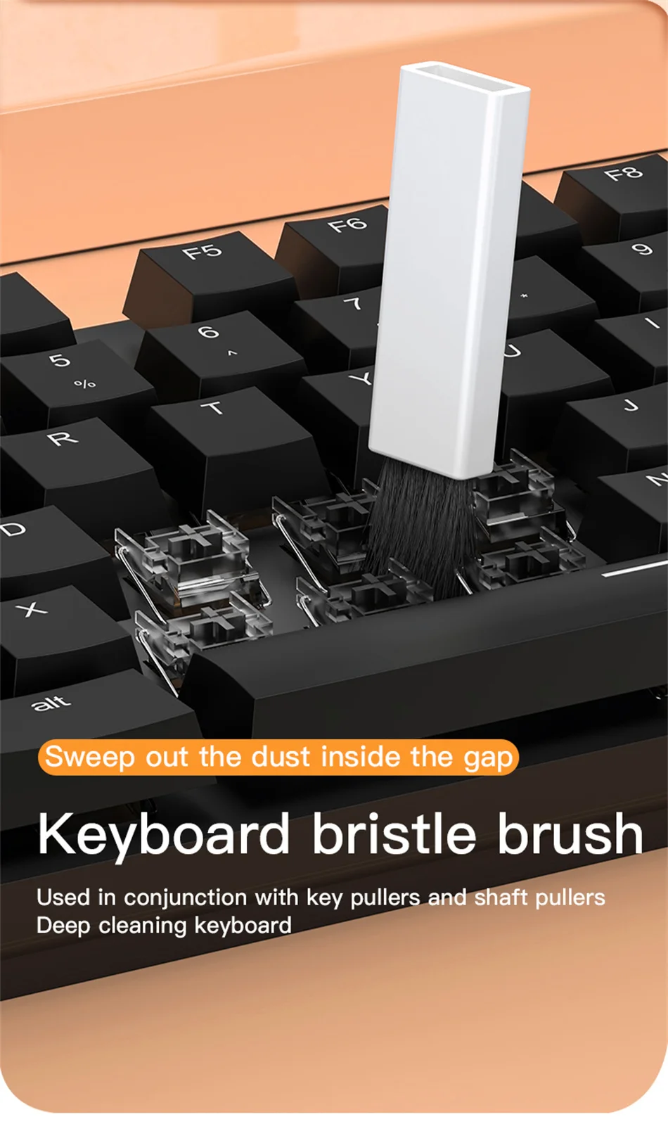 5. Usar con el extractor de llaves y el extractor de ejes para limpiar profundamente el teclado