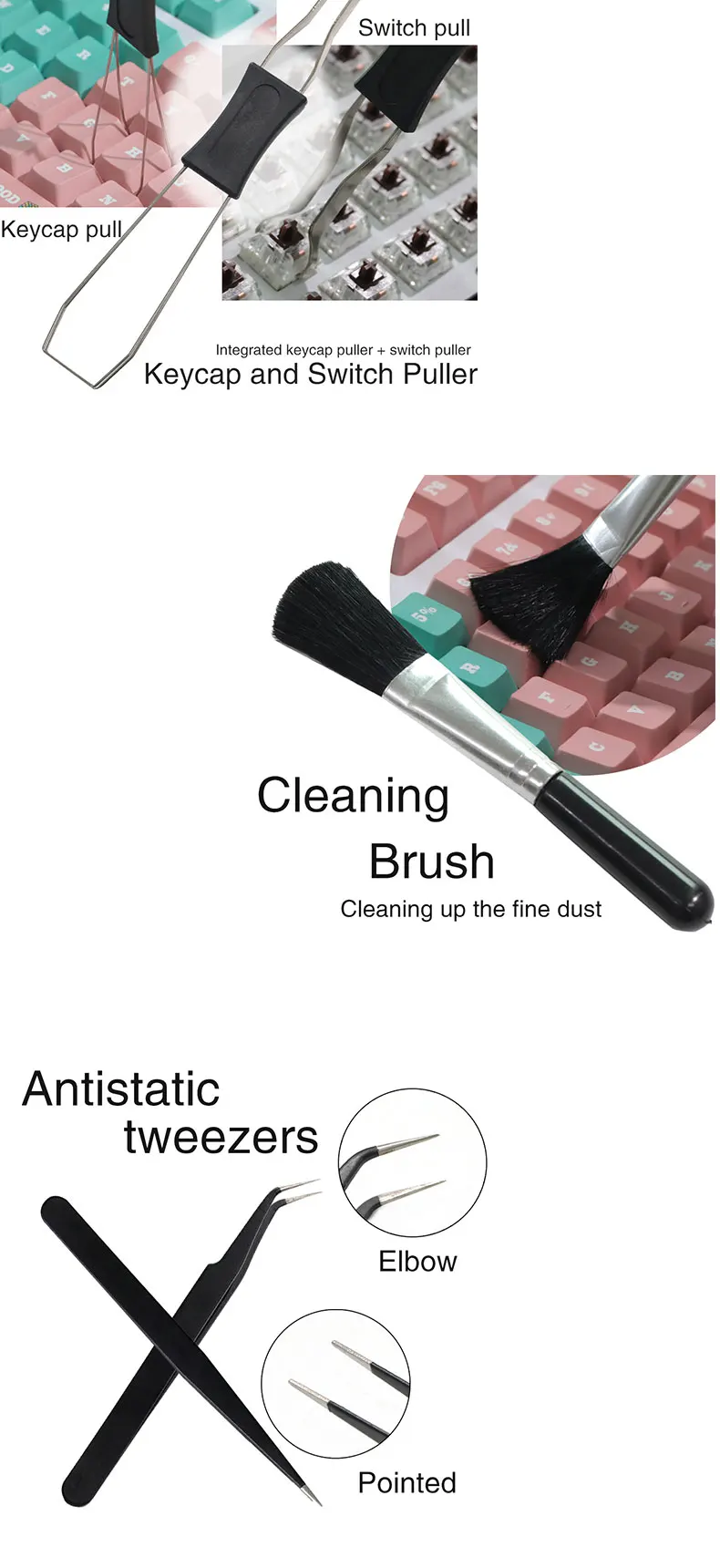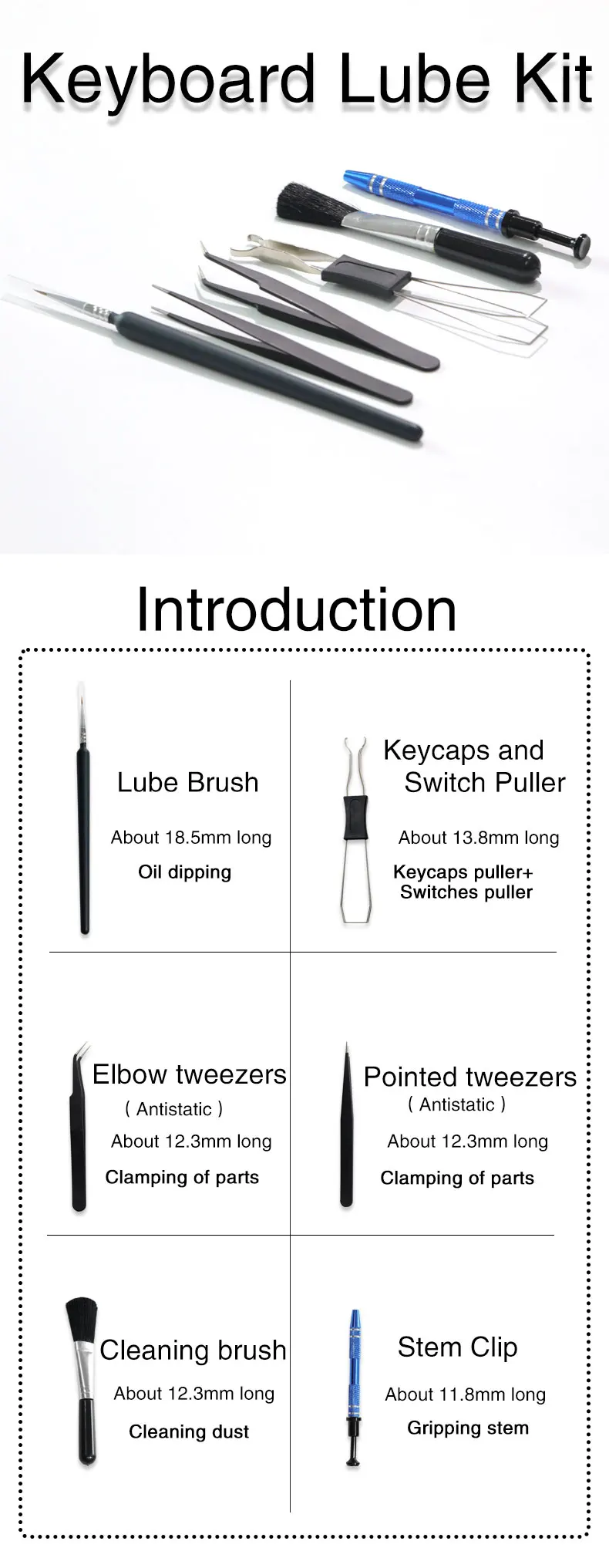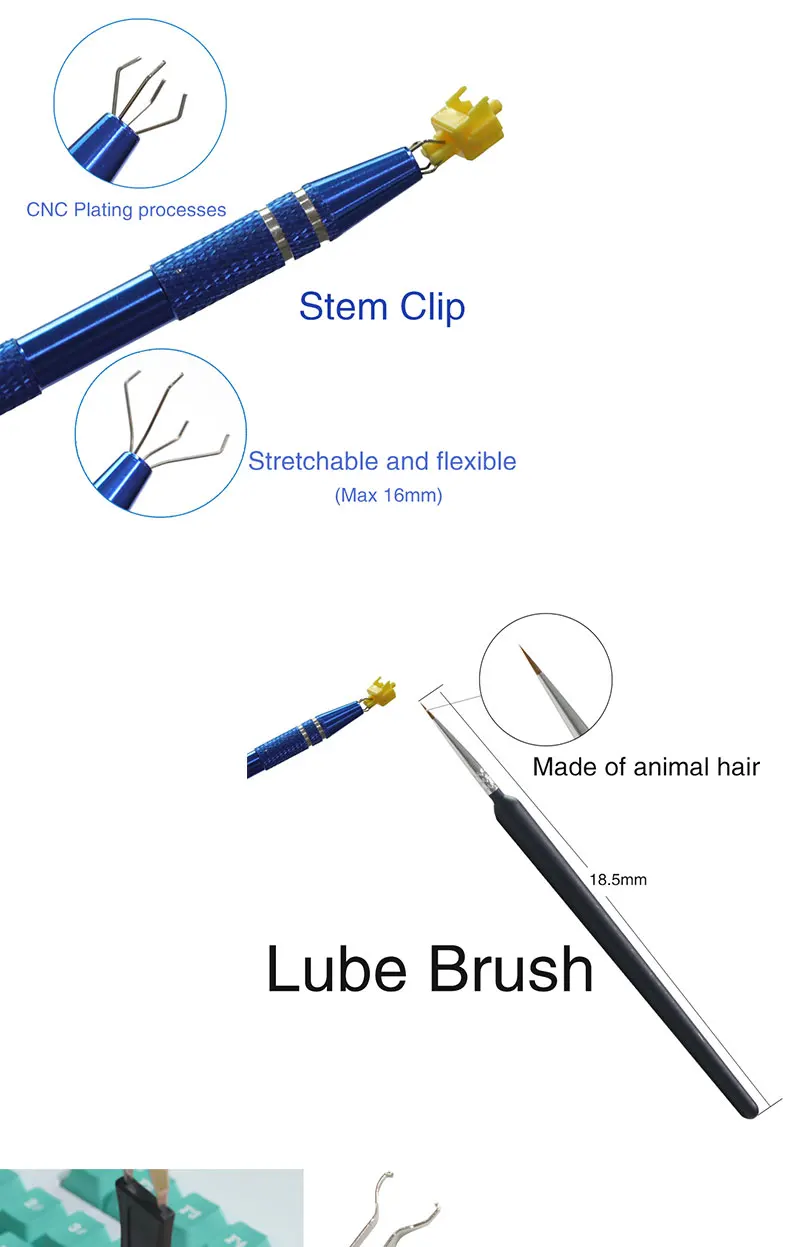 Comprar Juego de Herramientas de lubricación para teclado mecánico, kit de herramientas de lubricante, cepillo de limpieza, pinzas, extractor, removedor de interruptor, soporte de vástago, 2 en 1