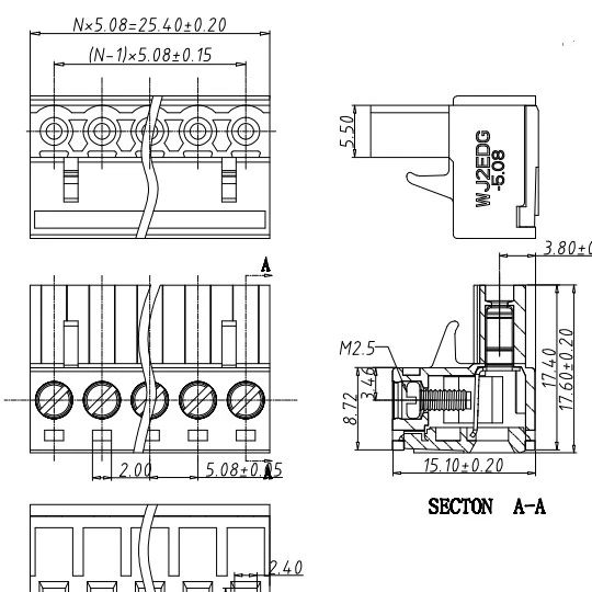Comprar Juego ht5.08 de 2/3/4/5/6/7/8 Pines, tipo enchufe Terminal, 300V, 10A, 5,08mm, Conector de paso, bloque de terminales de tornillo pcb, 10 juegos