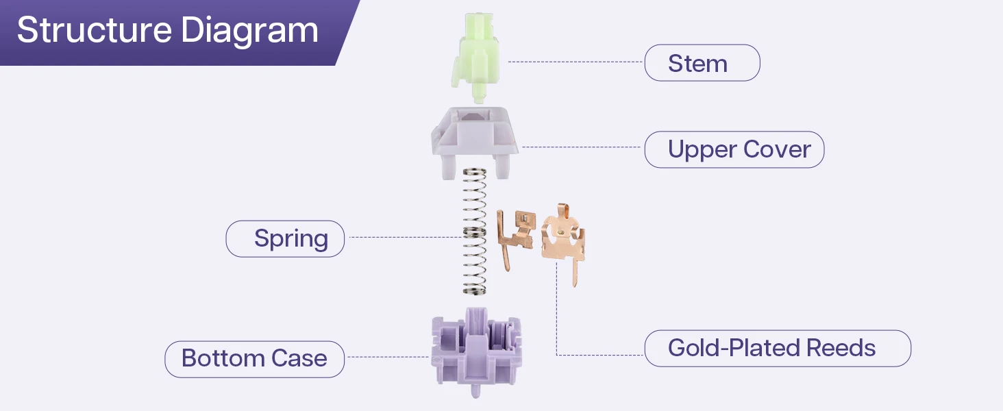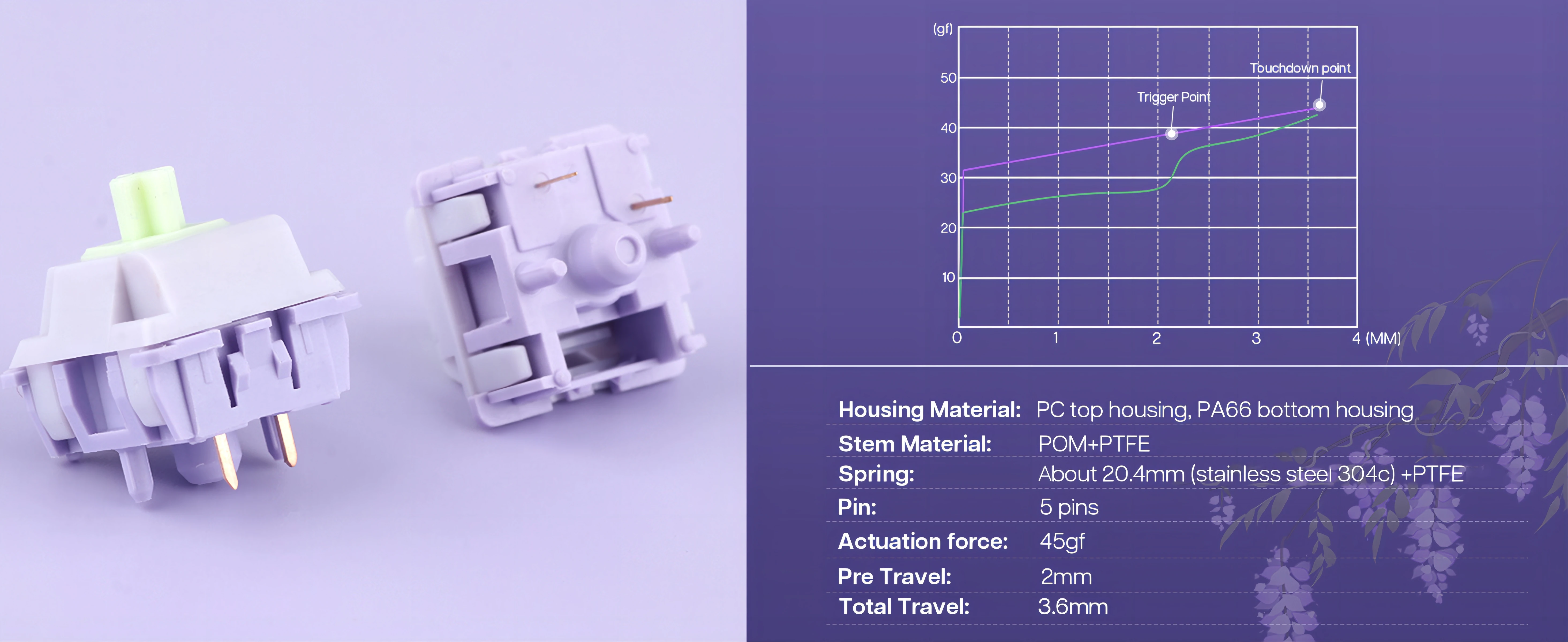Comprar Juego de interruptores de 5 pines para teclado mecánico intercambiable en caliente, EPOMAKER Wisteria Linear Factory, 100 piezas