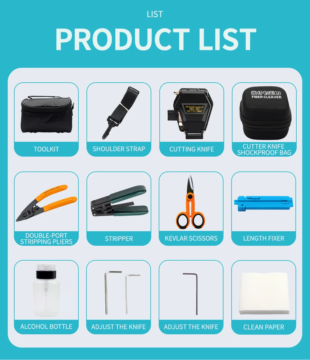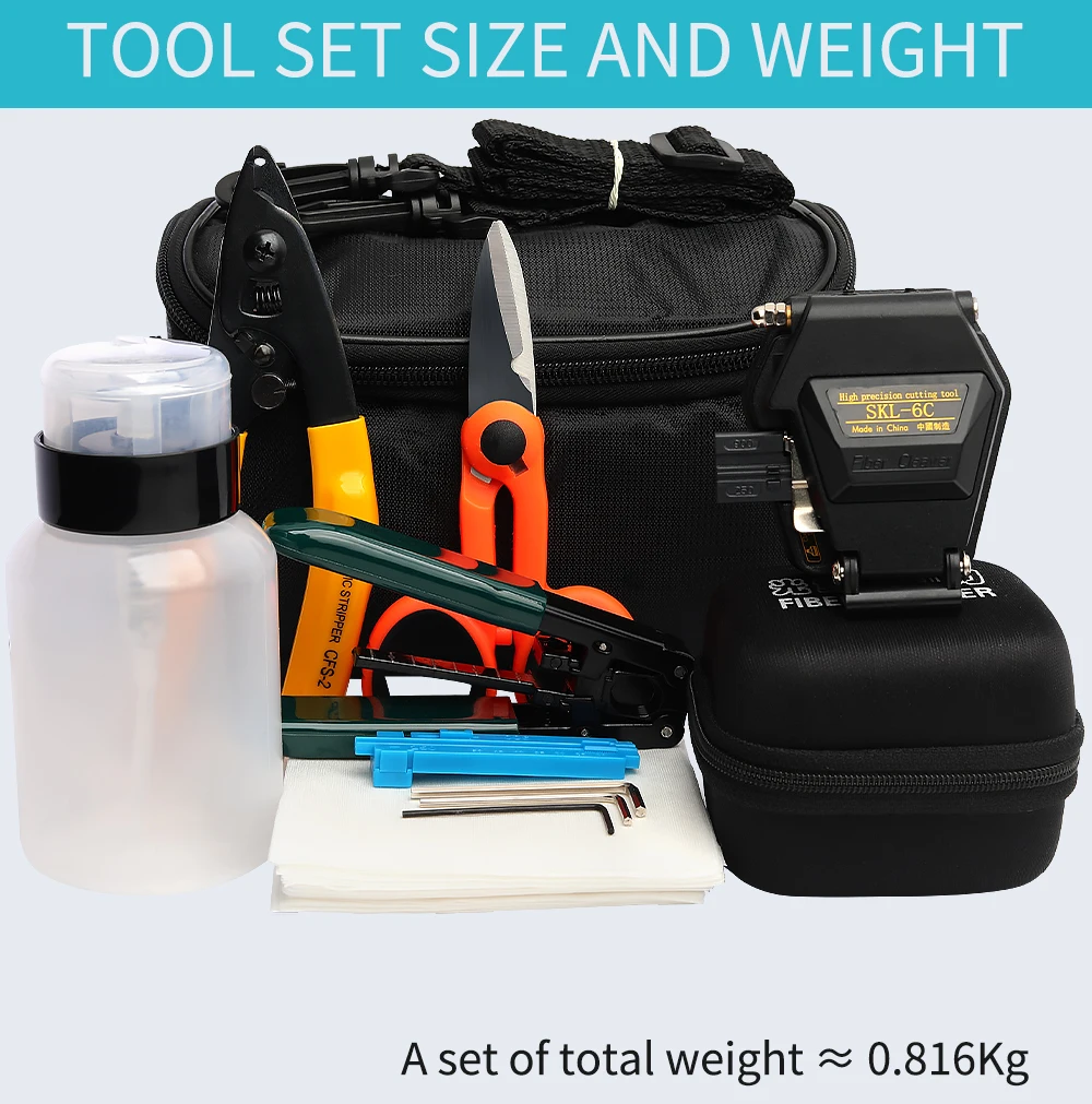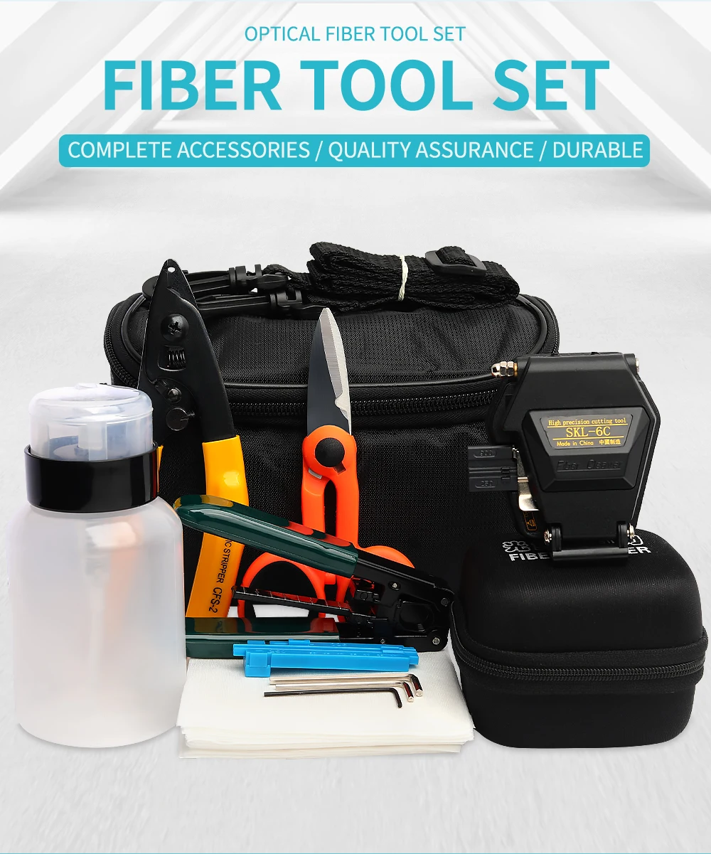 Comprar Juego de Kit de herramientas FTTH de 12 uds, bolsa de traje de fusión en caliente, cuchilla de fibra de SKL-6C con Pelacables