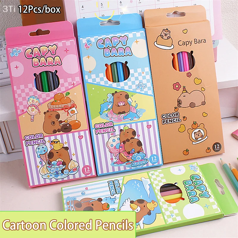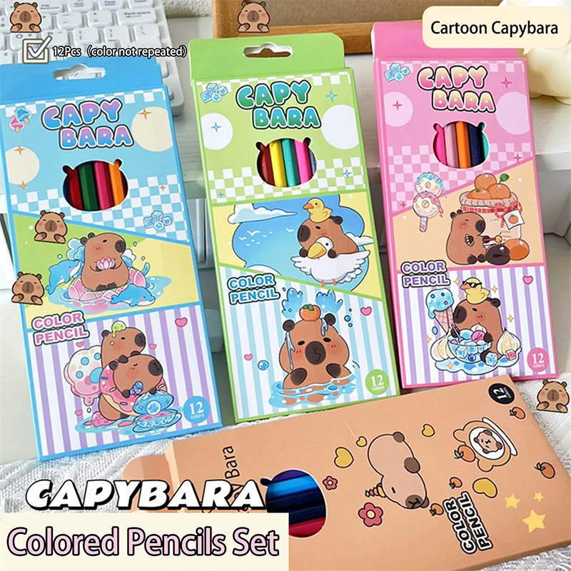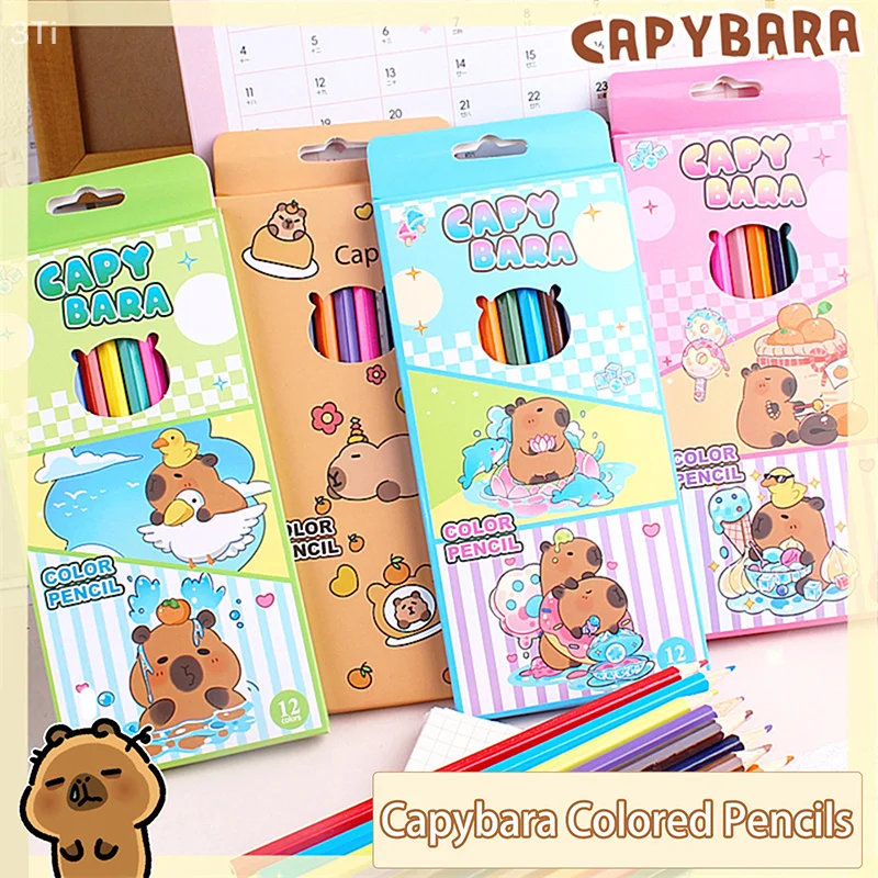 Comprar Juego de lápices de colores de madera de capibara de dibujos animados, 12 Uds., lápices de dibujo, lápices para bocetos de pintura de artista, suministros escolares y de oficina, regalo