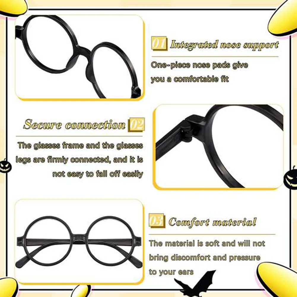 [Gafas]: estas gafas con montura redonda sin lentes están hechas de material plástico que no es fácil de romper o desvanecer.