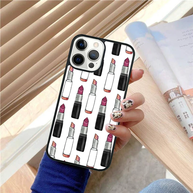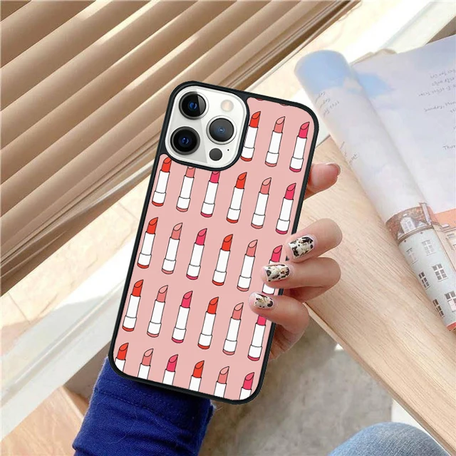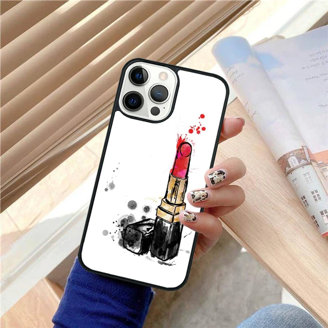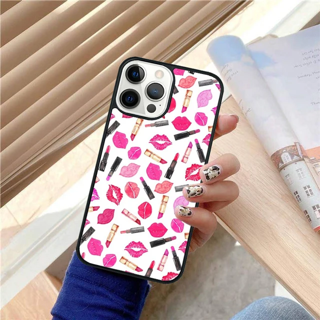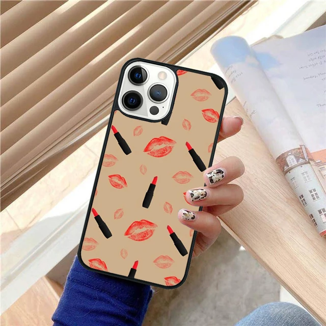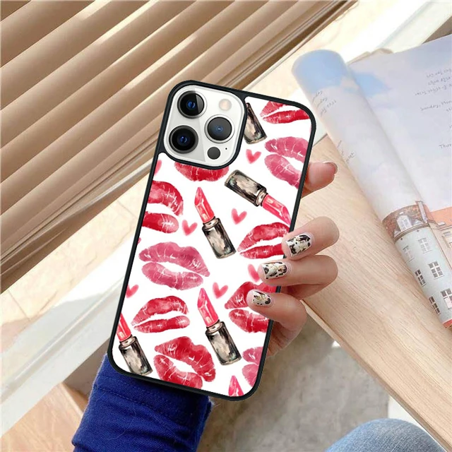 Juego de lápiz labial rojo de maquillaje, funda trasera para teléfono para iPhone 17 Air 16 15 14 13 11 12 Pro Max Plus