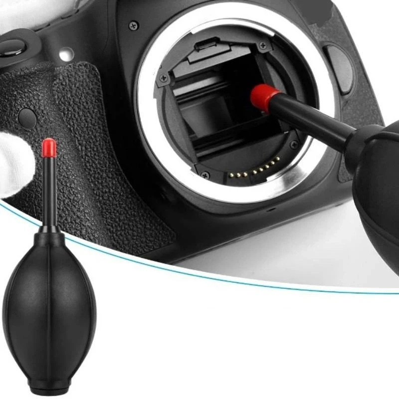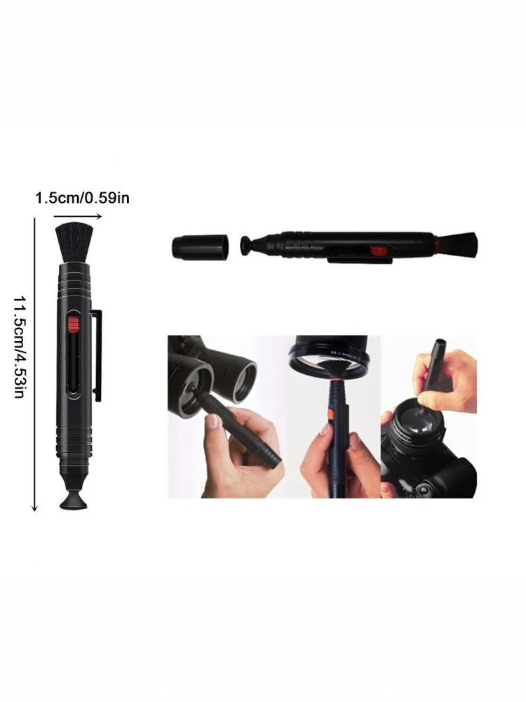 El soplador de aire puede dirigir fácilmente una corriente de aire para eliminar el polvo y la suciedad de la lente, y el lápiz limpiador de lentes de doble cara le proporciona una limpieza multifuncional.