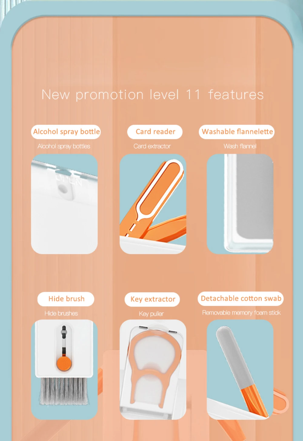 Kit de limpieza multifuncional 11 en uno, kit de limpieza multiusos de una máquina