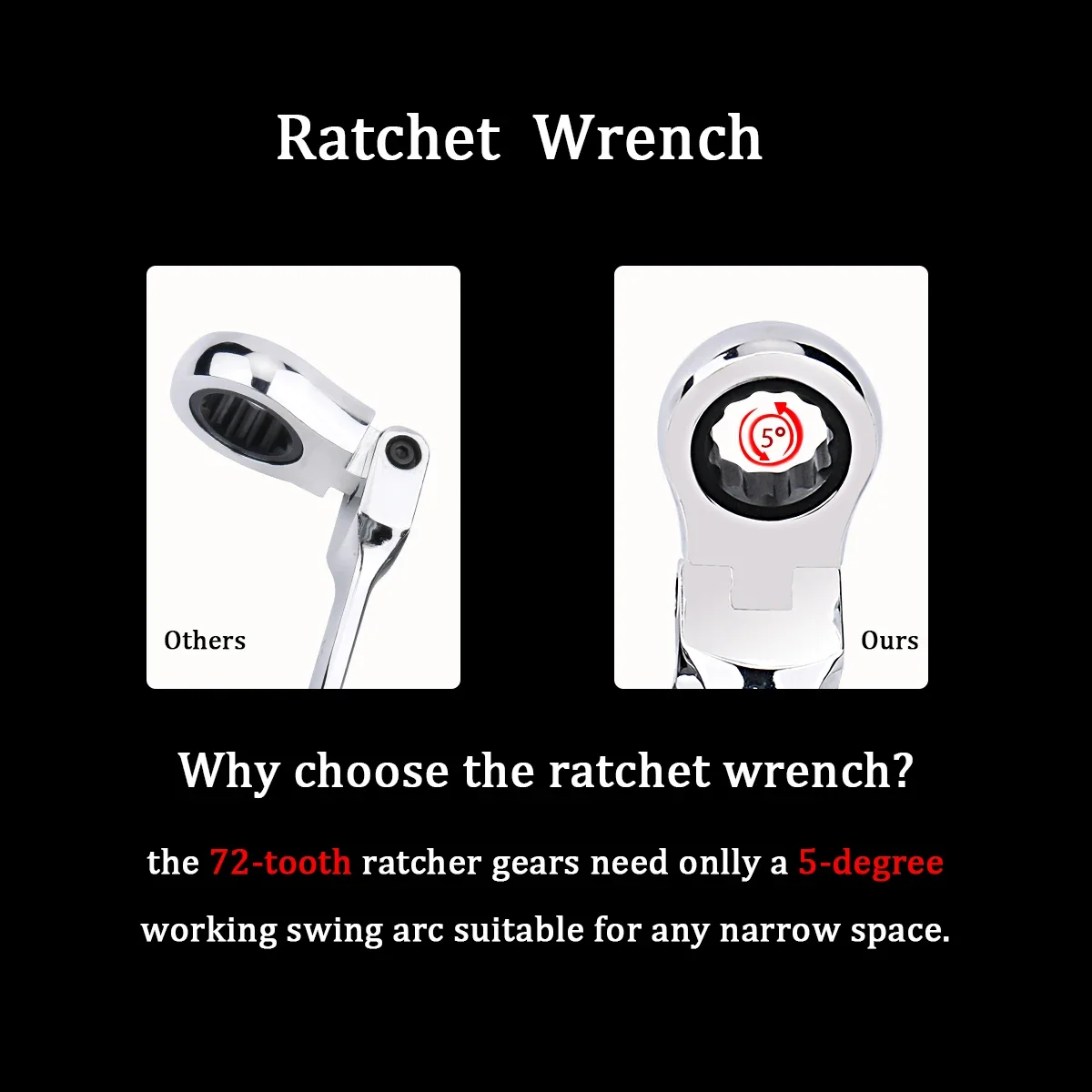 Llave de trinquete de llaves Juego de llaves Herramienta de mano 72 dientes Trinquete Cabeza flexible Acabado de espejo