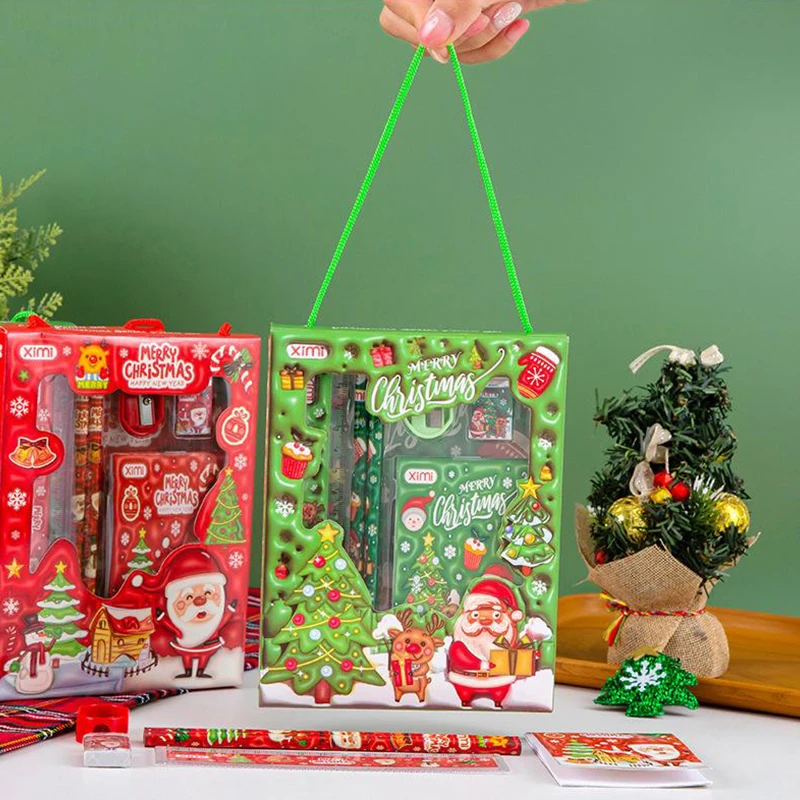 1.Rica combinación de juegos: el juego de papelería navideña incluye varios tipos de artículos de papelería, como bolígrafos, reglas, sacapuntas, borradores, cuadernos, para satisfacer sus necesidades diarias de aprendizaje y trabajo.Puede satisfacer eficazmente las necesidades de uso de personas de diferentes grupos de edad, especialmente estudiantes y trabajadores de oficina.