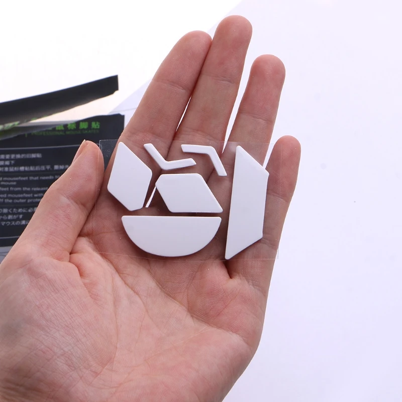 Este producto es un pie de ratón de repuesto. Después de quitar la pegatina original del pie del ratón, limpie la carcasa inferior con el algodón de alcohol que se adjunta en el paquete y luego pegue los nuevos pies del ratón. Después de quitar la película protectora transparente en los pies del ratón, Alinee cuidadosamente los pies en la ranura de la carcasa inferior del ratón, luego aplique una ligera presión para adaptarse al pie. No pegue ni retire repetidamente las pegatinas del pie.