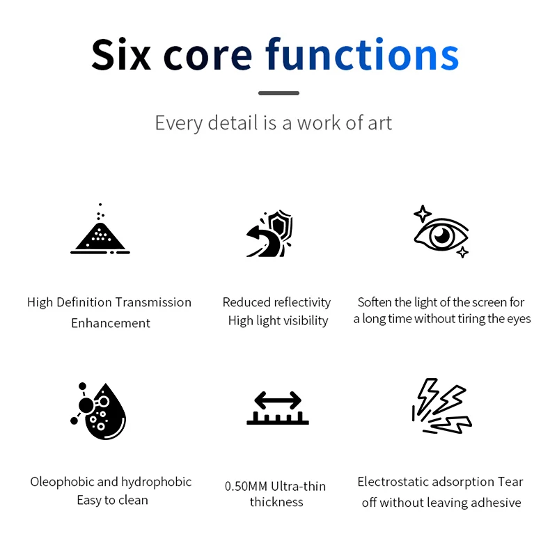 4. Extremadamente Delgado, que le brinda una experiencia de visualización de alta transparencia, reflexión ultrabaja, calidad de imagen de alta definición, todos los colores de la pantalla se expresan vívidamente, sin ninguna distorsión, Y no reducirá la sensibilidad, fácil de detectar cada toque de sus dedos.