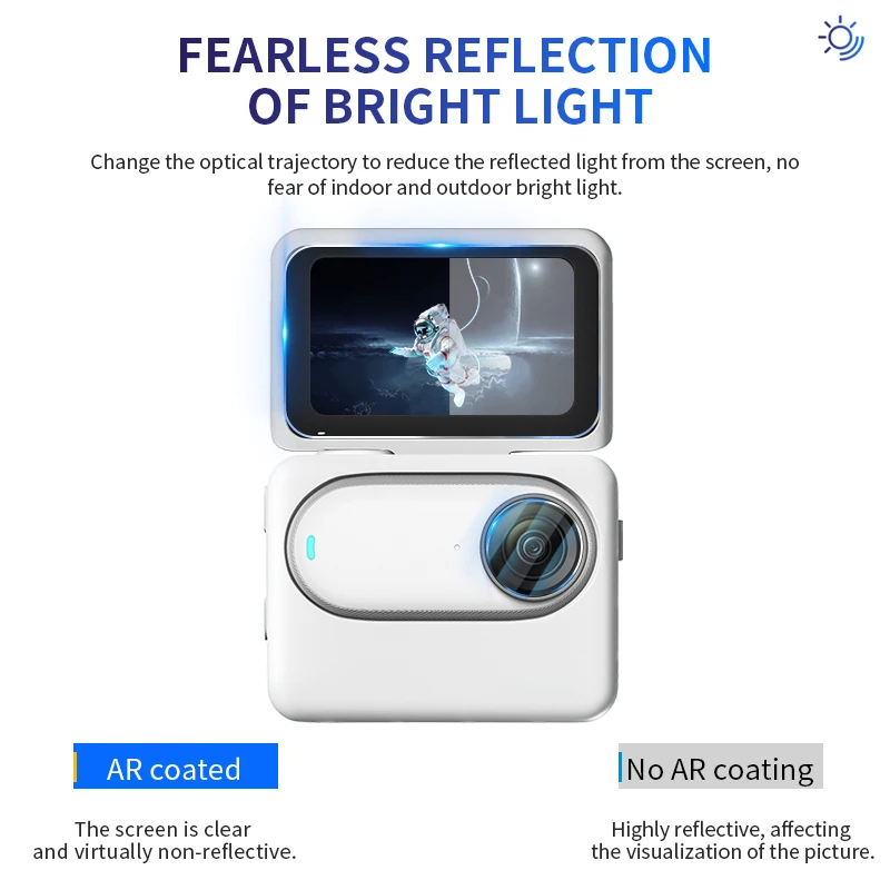 2. La película templada de la pantalla es adecuada para la pantalla de la Cámara Insta360 GO3S/GO3, la película templada de la pantalla tiene una mayor dureza, lo que evita que la pantalla de la Cámara sufra un impacto de caída de alta intensidad, arañazos como llaves y cuchillos, cobertura de pantalla completa, refuerzo secundario del borde, bordes resistentes a los arañazos y al desgaste, Y esquinas redondeadas de arco de 60 grados sin rayar.