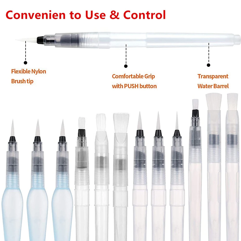 Comprar Juego de pinceles de acuarela recargables, 12 piezas, para estudiantes, fiestas, manualidades