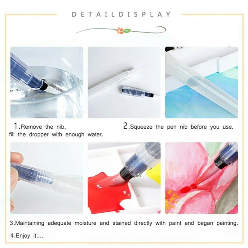 Comprar Juego de pinceles de nailon recargables para pintura al agua, conjunto de pinceles suaves para acuarela, suministros de arte para dibujo, 6 unidades