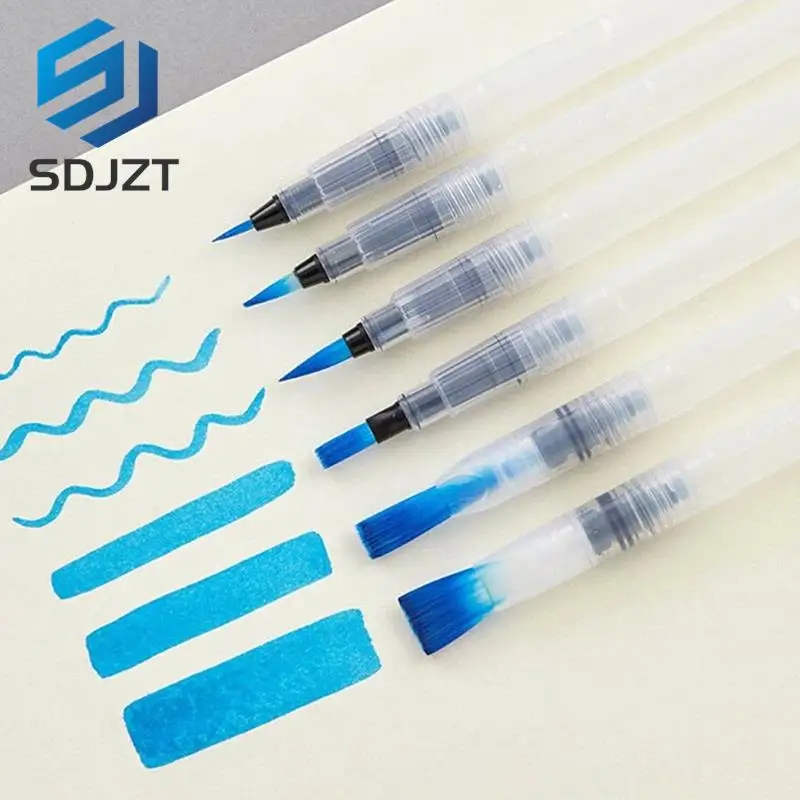 Comprar Juego de pinceles de nailon recargables para pintura al agua, conjunto de pinceles suaves para acuarela, suministros de arte para dibujo, 6 unidades