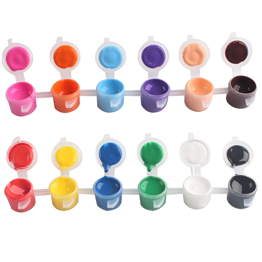 Juego de pinceles de pintura acrílica de 12 colores, herramienta de dibujo artesanal DIY