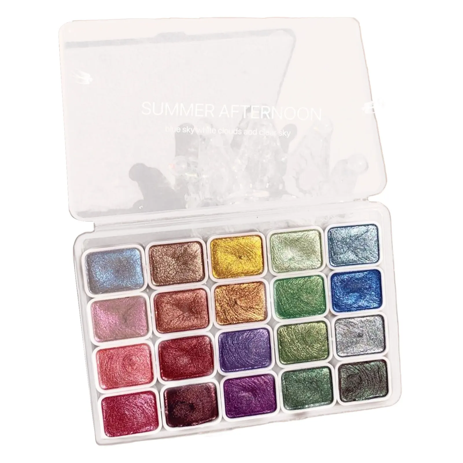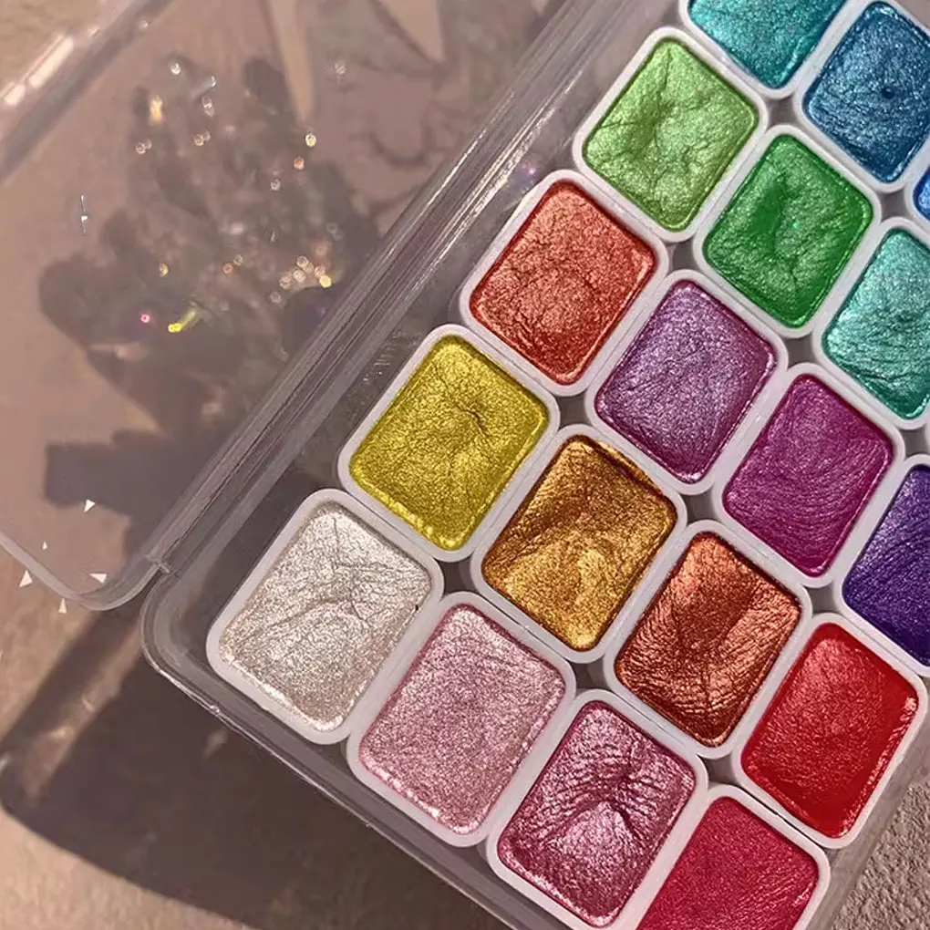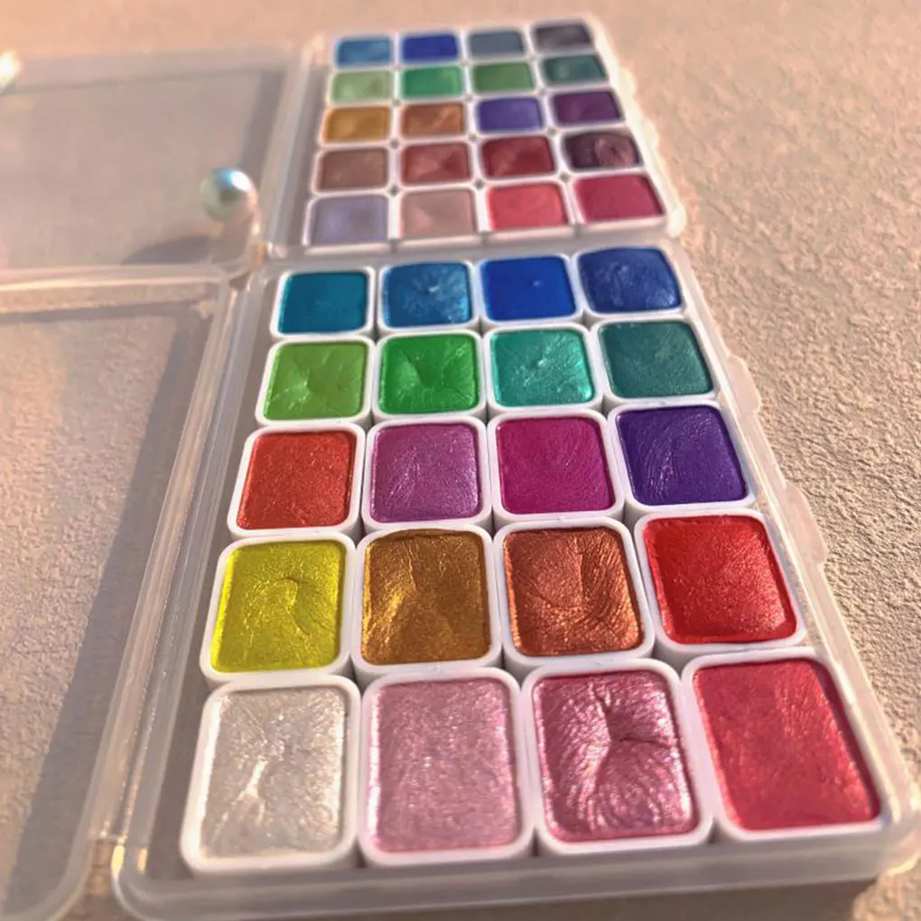 Caja de pintura sólida con acuarela brillante para artistas: la fórmula de brillo de larga duración agrega un efecto deslumbrante a sus pinturas, lo que lo convierte en un regalo maravilloso para los entusiastas del arte