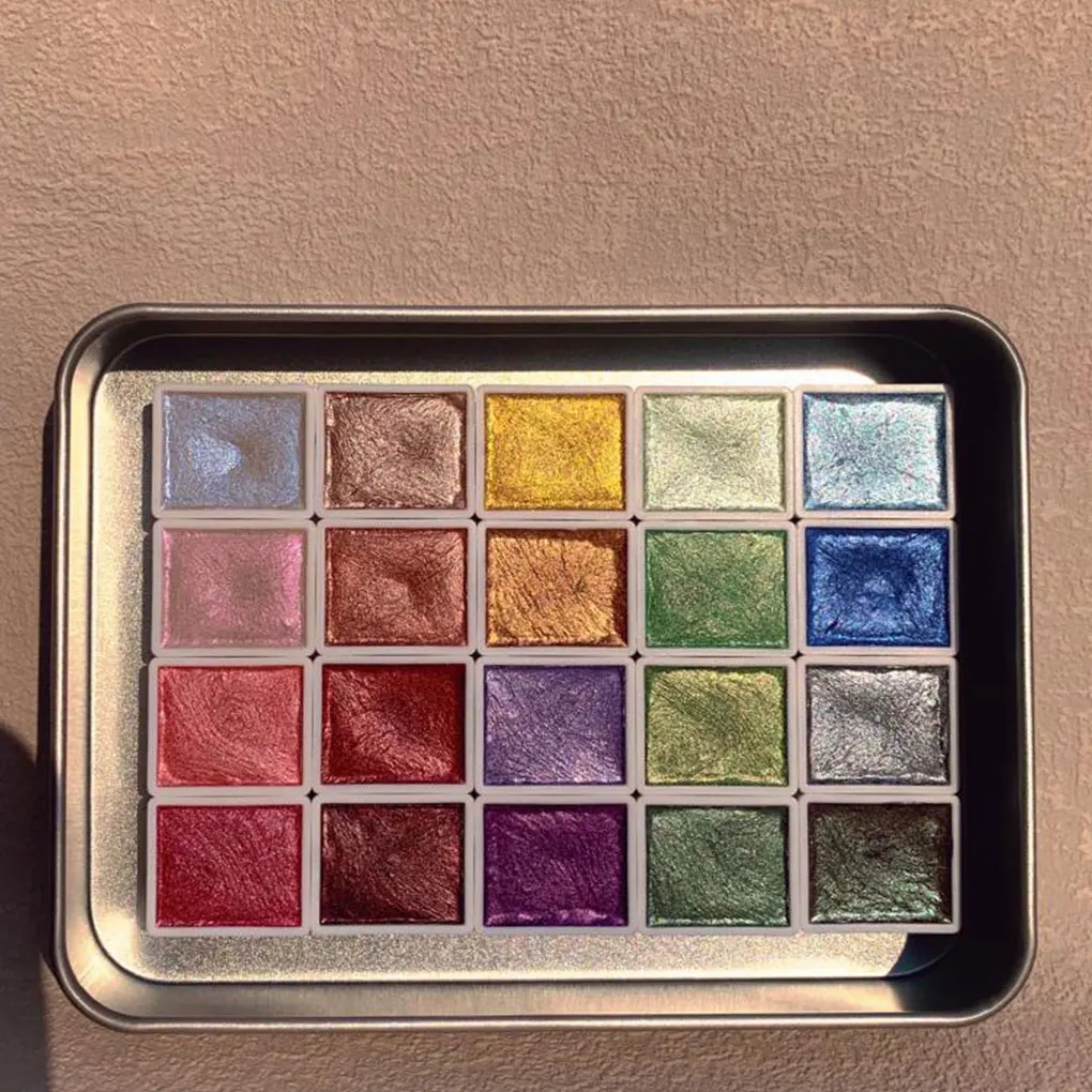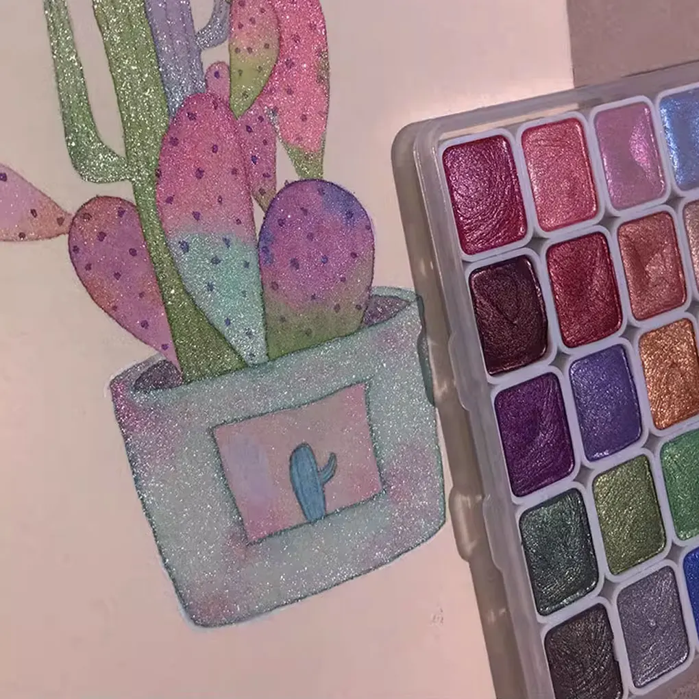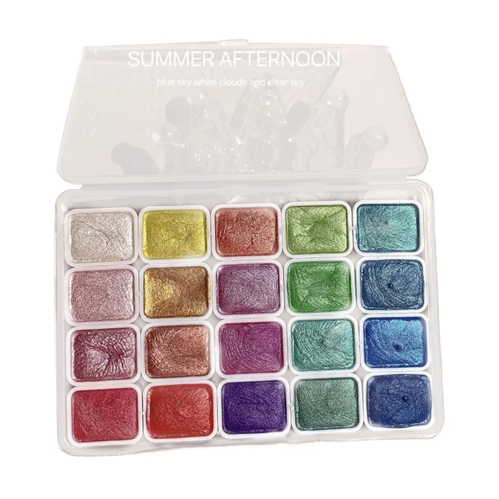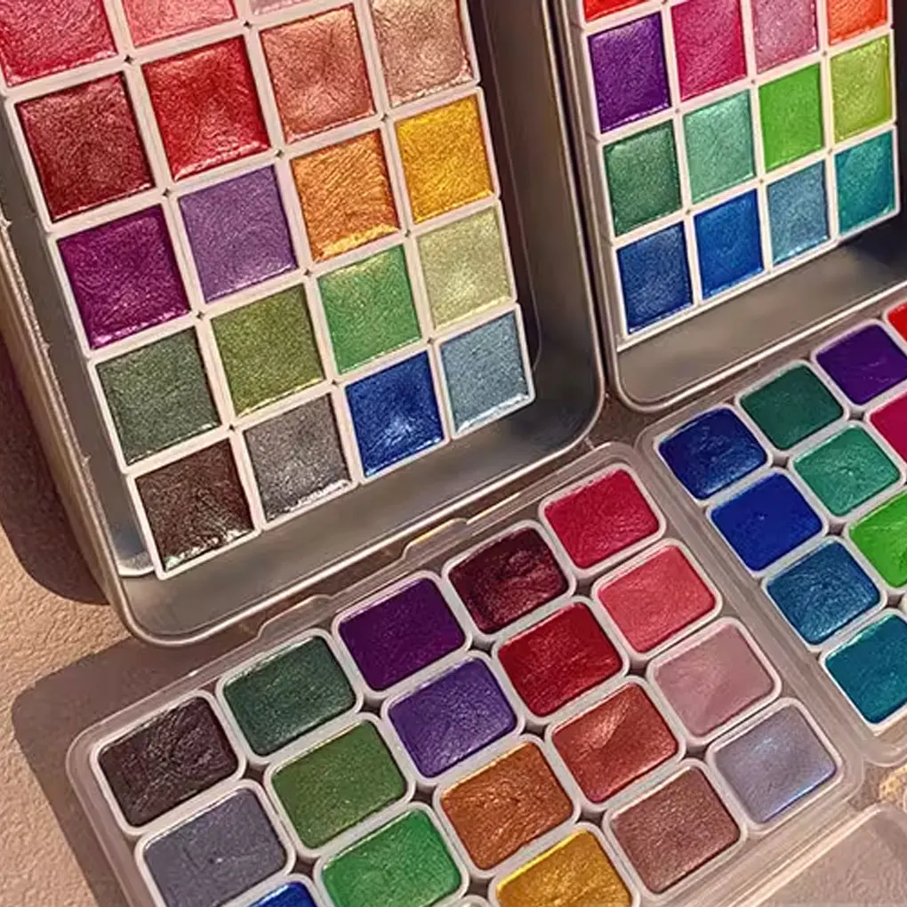 Caja de pintura sólida con acuarela brillante para artistas: la fórmula de brillo de larga duración agrega un efecto deslumbrante a sus pinturas, lo que lo convierte en un regalo maravilloso para los entusiastas del arte