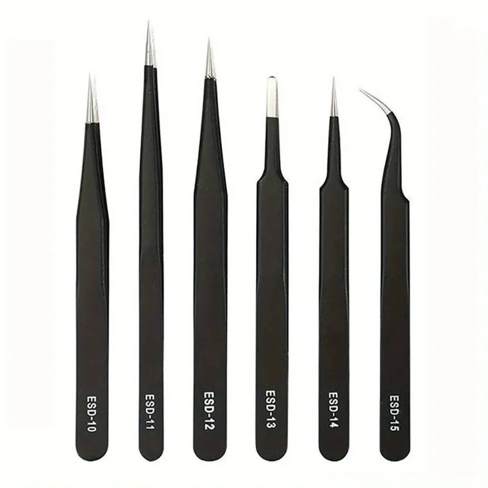 Juego de pinzas antiestáticas ESD de precisión, herramienta duradera de acero inoxidable de 6 piezas para reparación electrónica y modelado de procesos, doblado y St