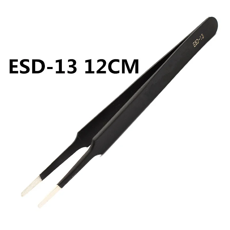Juego de pinzas industriales de acero inoxidable antiestáticas, herramientas de reparación de teléfonos móviles, pinzas de precisión ESD ESD10 a ESD15, 1,5mm