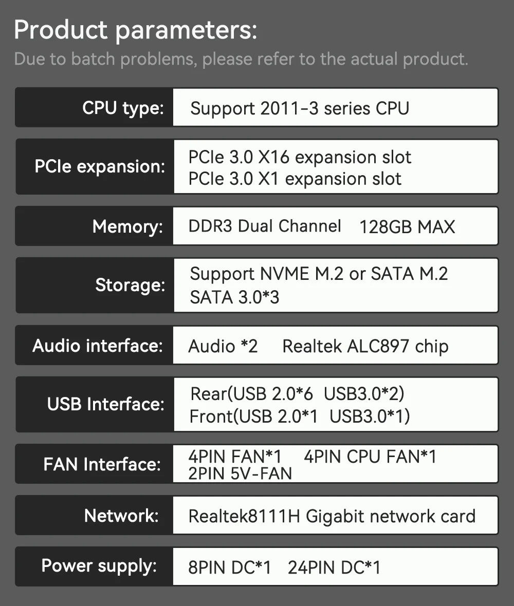 Procesador: Compatible con los procesadores de la serie Intel. (El procesador actualmente probado solo es compatible con: E5 2629 V3, E5 2649 V3, E5 2669 V3, E5 2666 V3, E5 2673 V3, E5 2676 V3, E5 2678 V3, E5 2696 V3.)