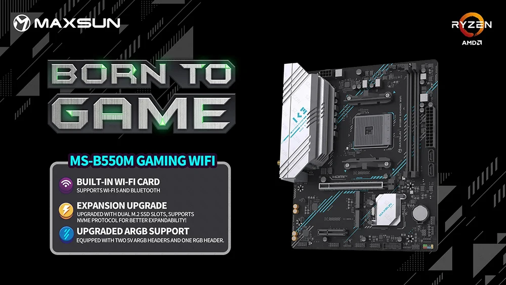 Juego de placa base Maxsun B550, Kit de juegos con serie RYZEN 5000 DDR4, 3200MHz, WIFI integrado, compatible con 2 * M2 NVME 2 * SATA3.0