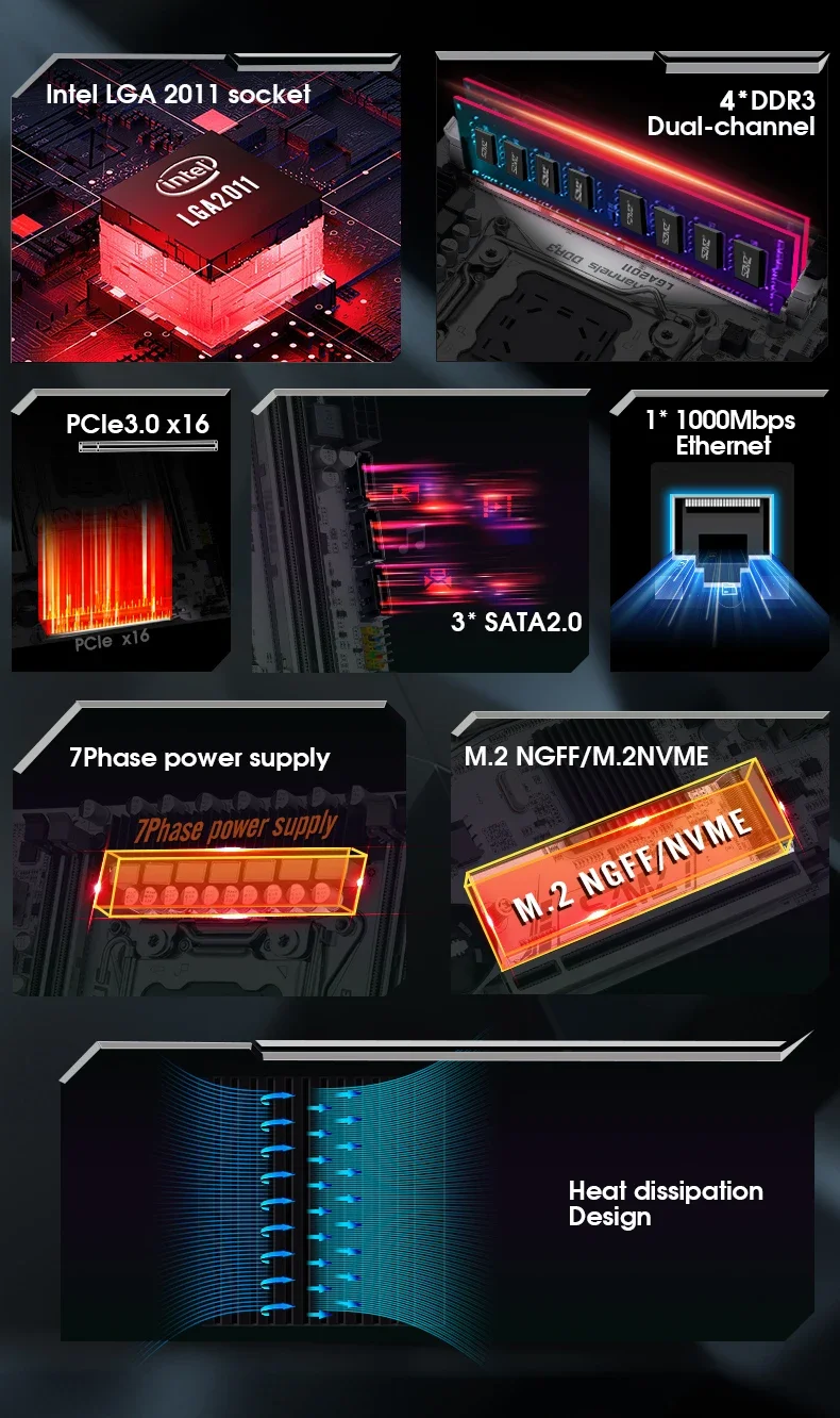 Procesador compatible: Intel serie LGA2011/V2, como E5 2620 2630 2640 2650 2660 2670 2680 2690 V1/V2 , etc.