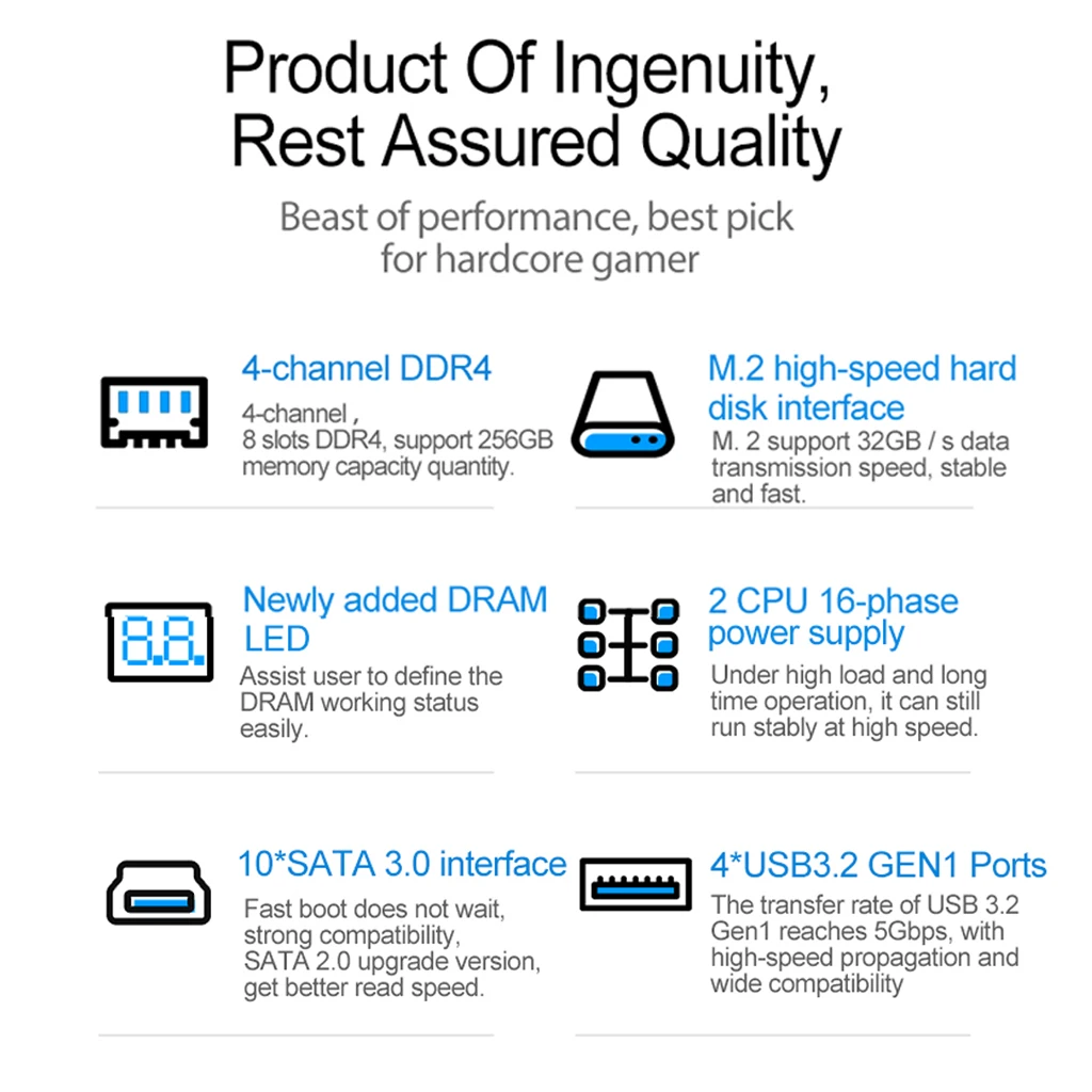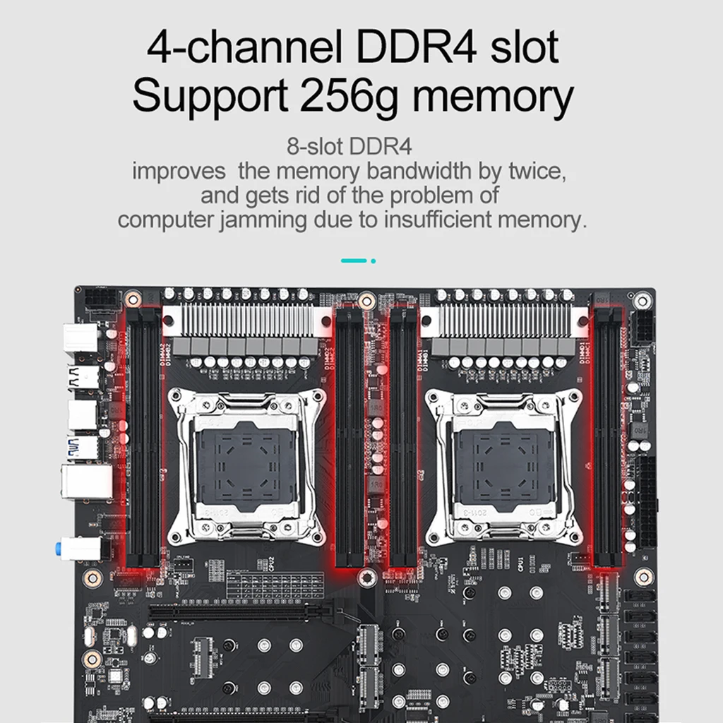 Juego de placa base X99 D4 Dual Pro con 8 ranuras de memoria DDR4 10 * SATA 3.0 2 * RTL811H Gigabit Ethernet para CPU Intel LGA 2011-3 V3/V4