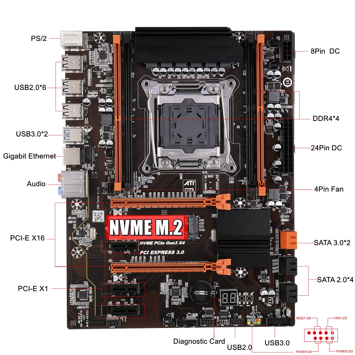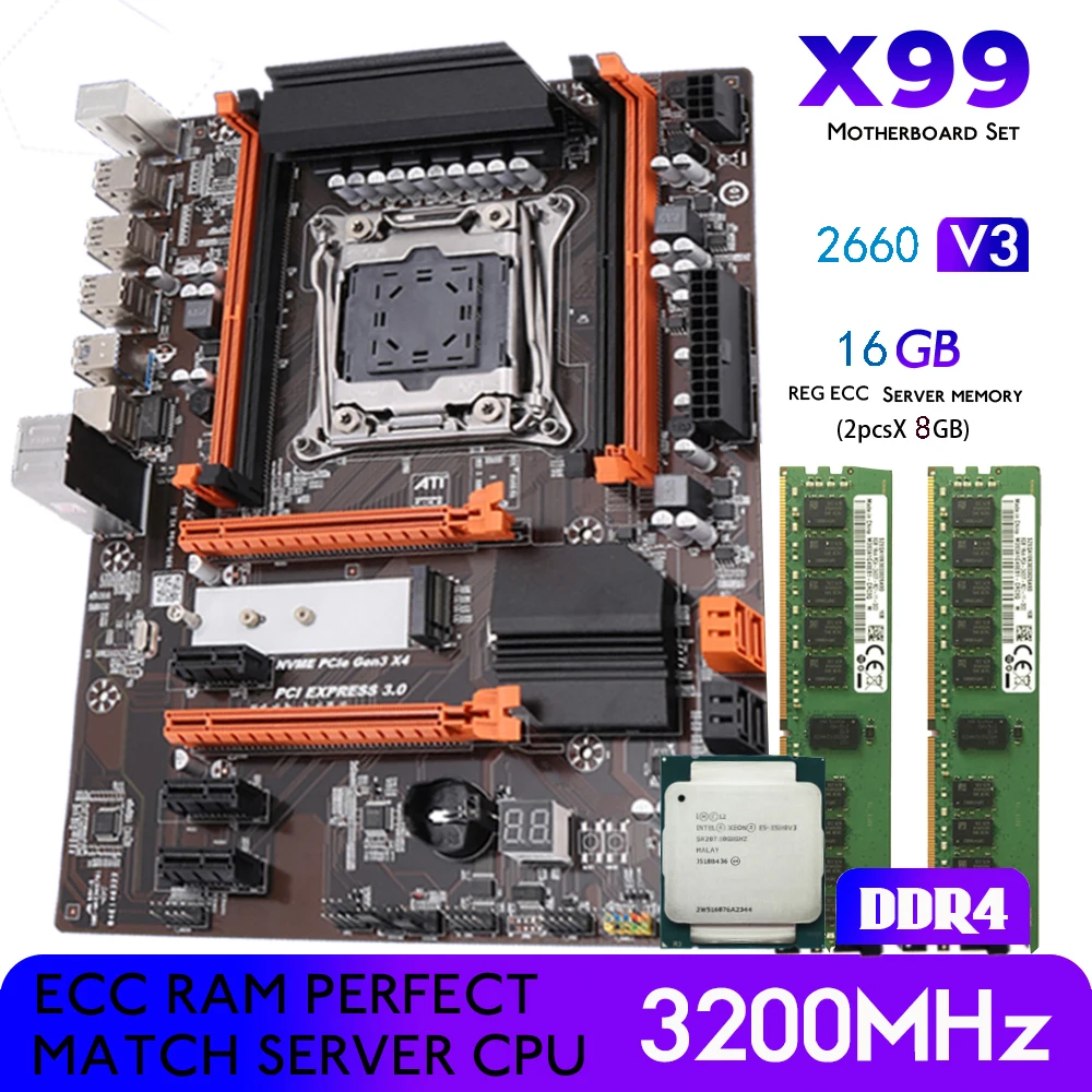 Juego de placa base X99 LGA 2011 3 para Intel E5 2660 V3 CPU 16GB ECC servidor memoria RAM M.2 Nvme LGA 2011 V3 kit de placa base.