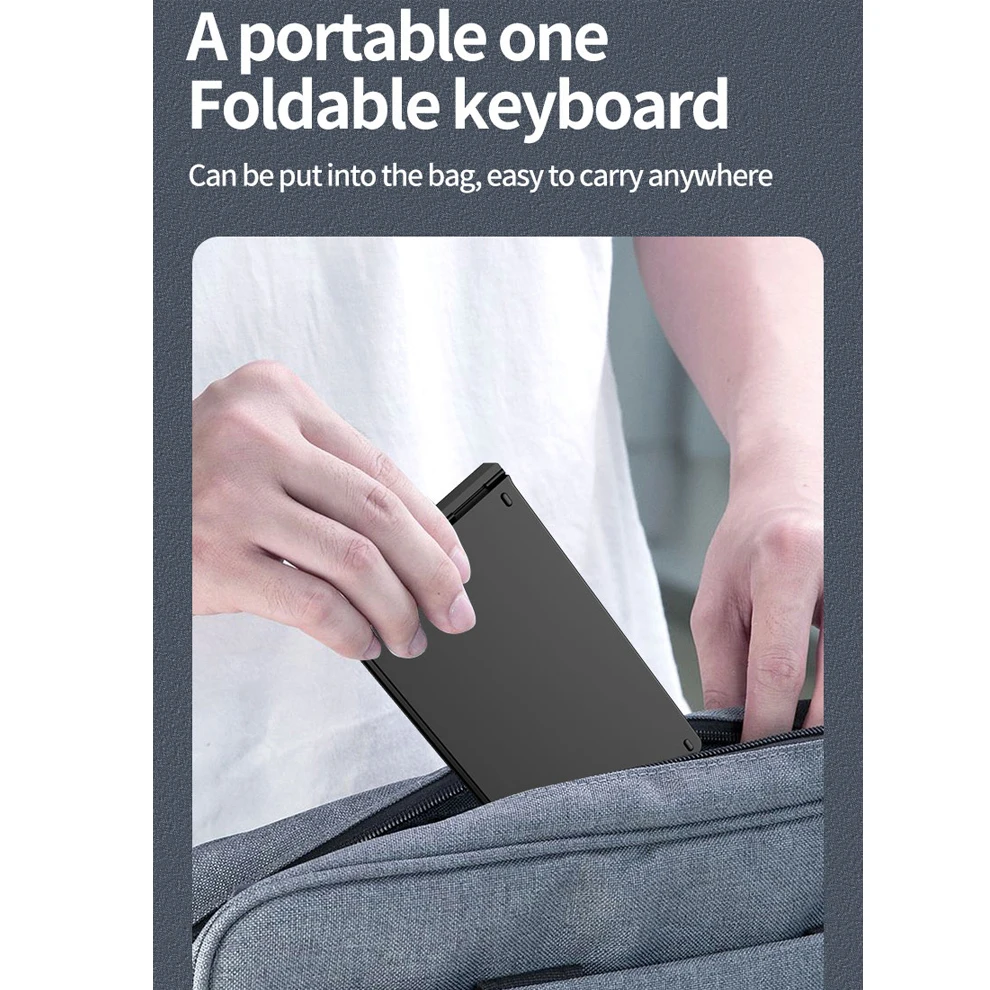 Diseño único y silencioso: las teclas del teclado plegable tienen un diseño ergonómico, lo que mejora en gran medida el tacto del teléfono en las teclas, reduciendo efectivamente la presión en la muñeca y el brazo.Incluso después de un uso prolongado, no es fácil cansarse y mejora la comodidad de uso.Tanto el teclado como el mouse están diseñados para ser silenciosos, lo que reduce significativamente el sonido de las pulsaciones de teclas.Incluso cuando se utilizan en entornos tranquilos como por la noche o en bibliotecas, no causarán ninguna molestia a los demás.