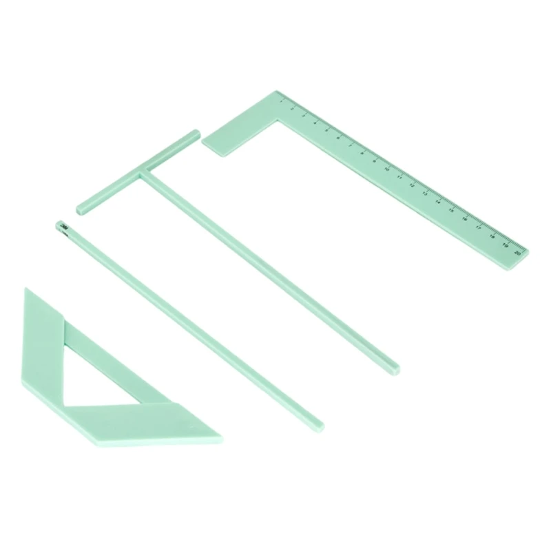 Cada juego incluye una regla en forma de L, una regla en forma de T, una guía de espaciado, un cuadrado para cortar esquinas y un estuche de transporte.