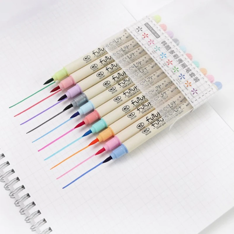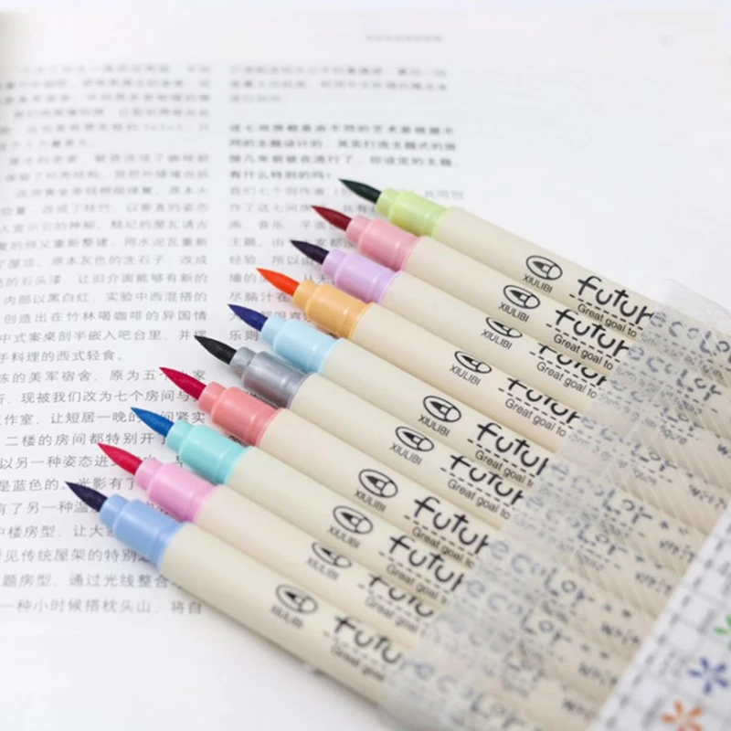 Comprar Juego de rotuladores de colores de pincel suave para dibujar letras, caligrafía, pintura, papelería, escuela, hogar, suministros de arte DIY, 10 piezas, A6805